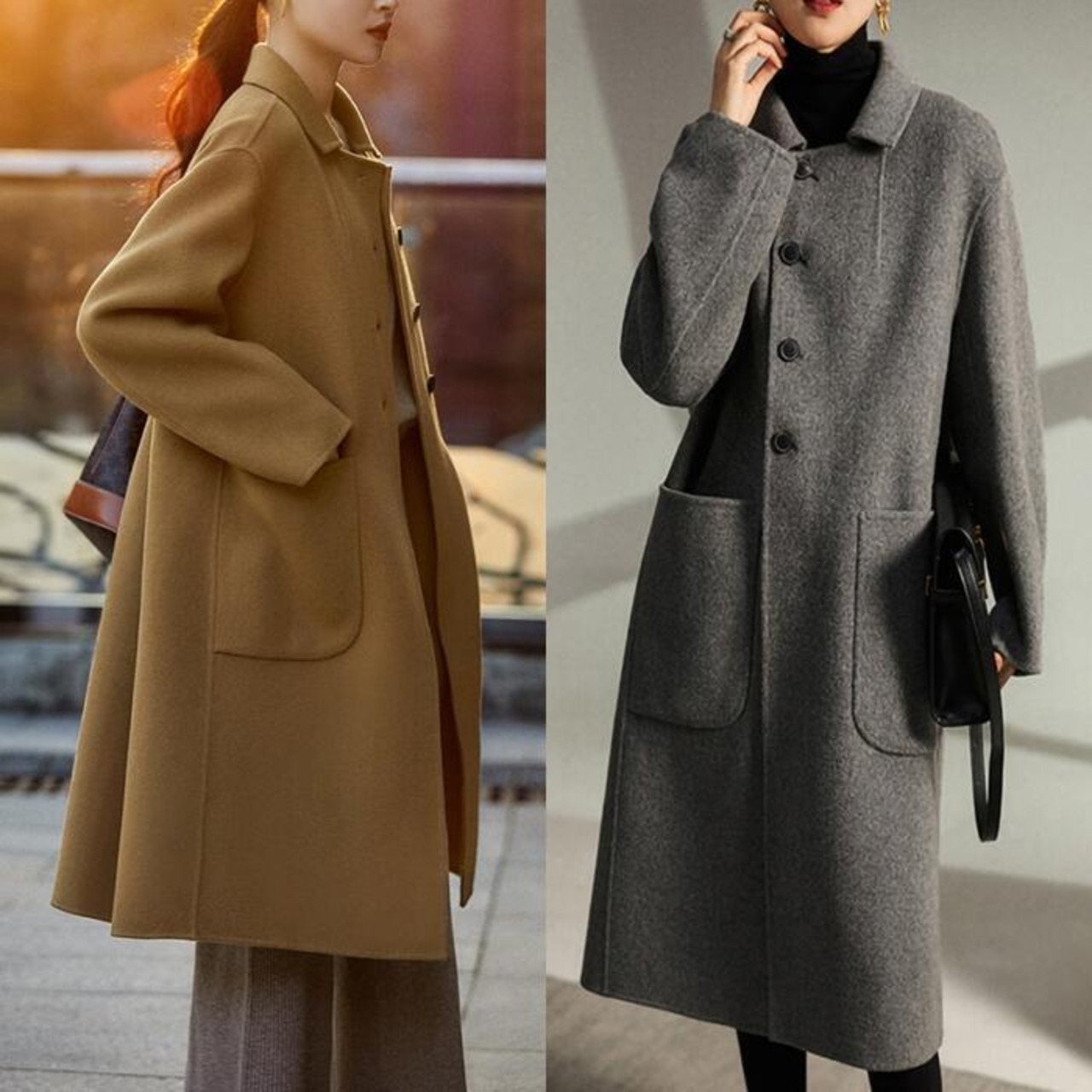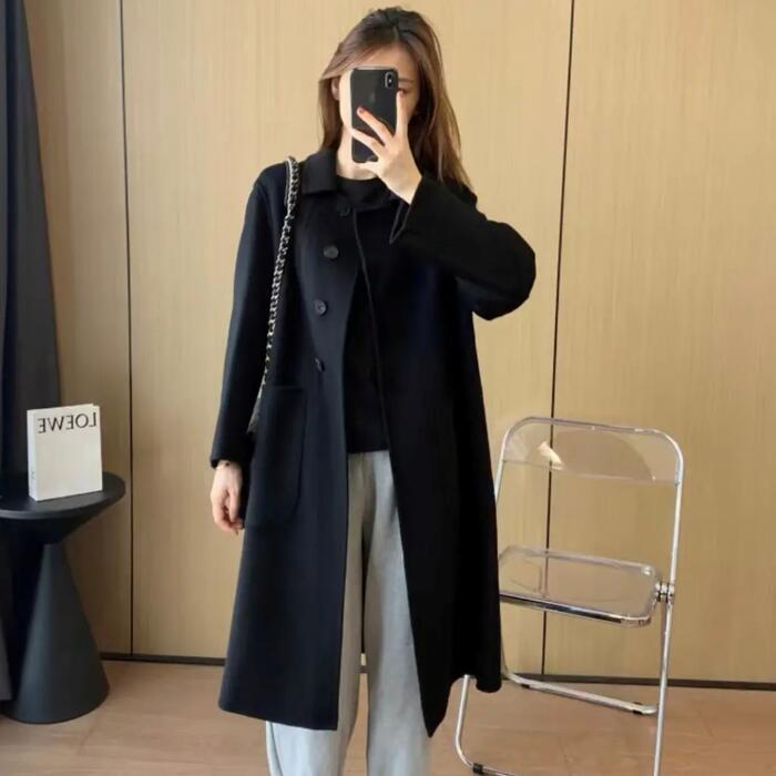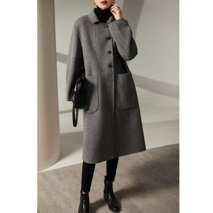 上品なひざ丈はスカートにもパンツにも合わせやすいのが◎。