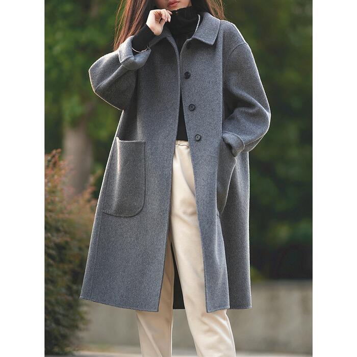 全3色 大きいサイズアウター ジャケット コート ステンカラー レディース エレガント きれいめ カジュアル ミディ丈 おしゃれ 長袖 大人 可愛い Aライン ゆったり 体型カバー シンプル グレー ブラック 黒 ベージュ ブラウン 春 秋 冬 20代 30代 40代 50代