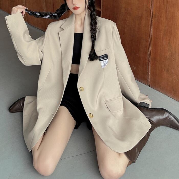 全2色 大きいサイズレディース 大きいサイズ 卒業式 卒園式 入園式 アウター テーラード ジャケット エレガント タグ カジュアル きれいめ かっこいい おしゃれ オーバーサイズ 可愛い ゆったり 韓国 ベージュ ブラック 黒 春 秋 冬 20代 30代 40代
