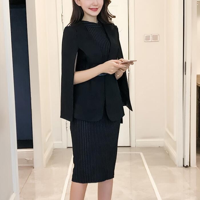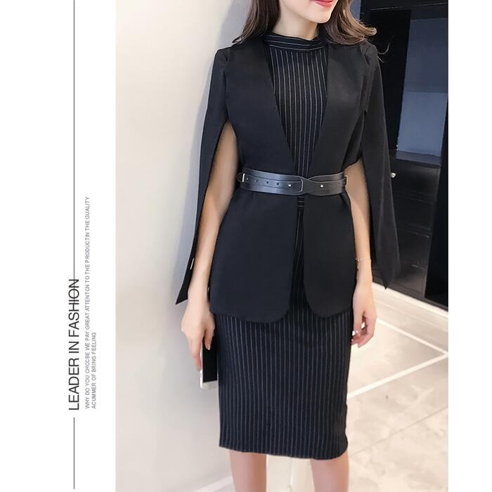 エレガント 大きいサイズ きれいめ入学式 ママスーツ レディース おしゃれ 卒業式 母 卒園式 入園式 ジャケット ケープ セットアップ セレモニー ワンピース スーツ 七五三 お宮参り 母親 ママ フォーマル ストライプ ウエストベルト ブラック 黒 春 秋 冬 20代 30代 40代