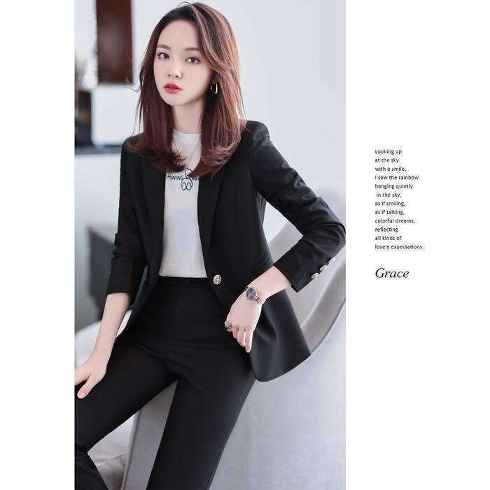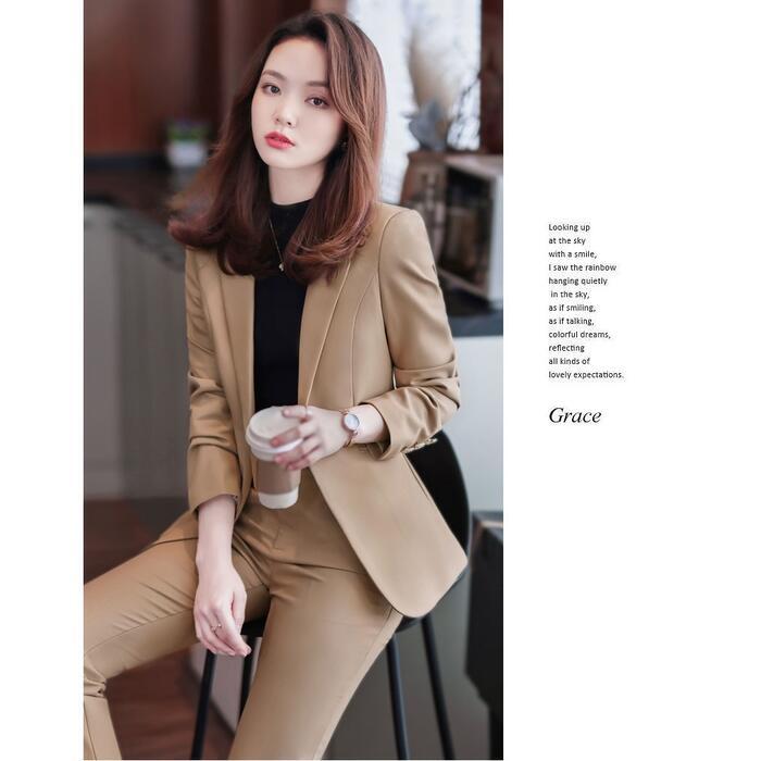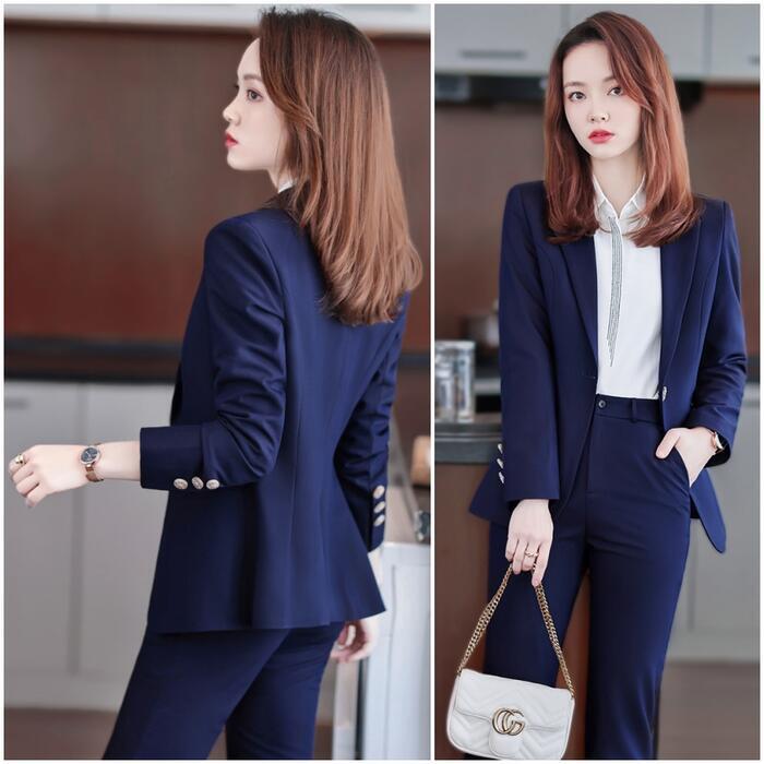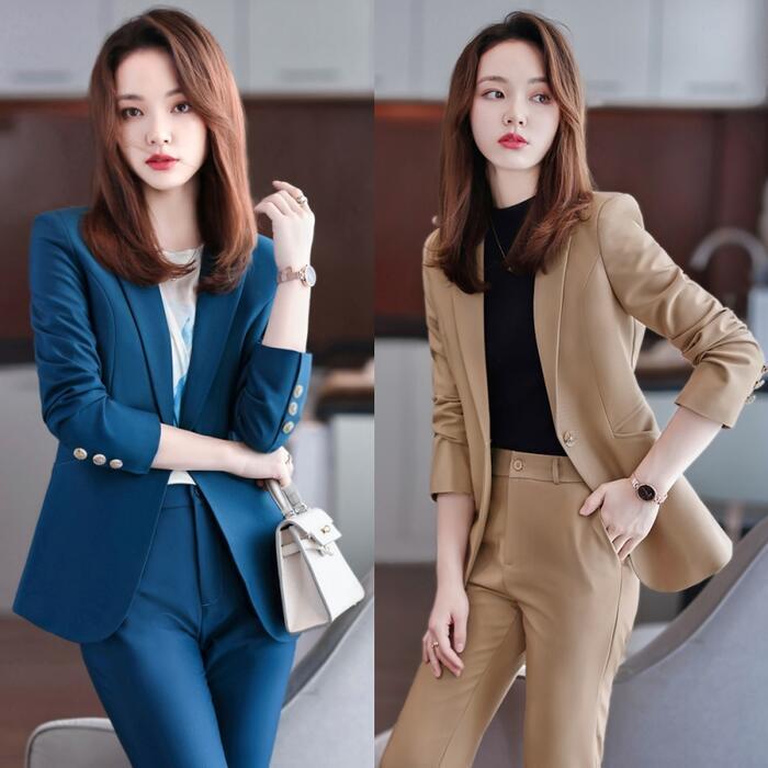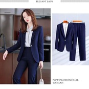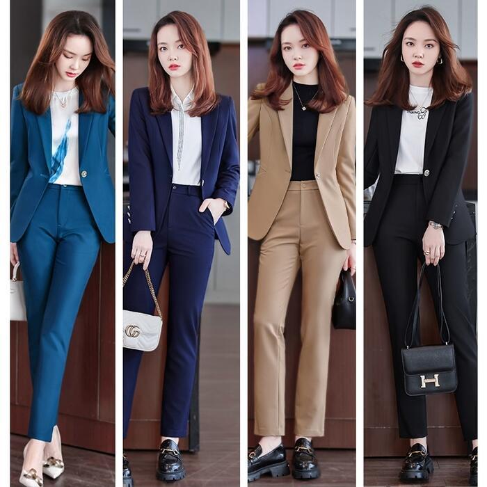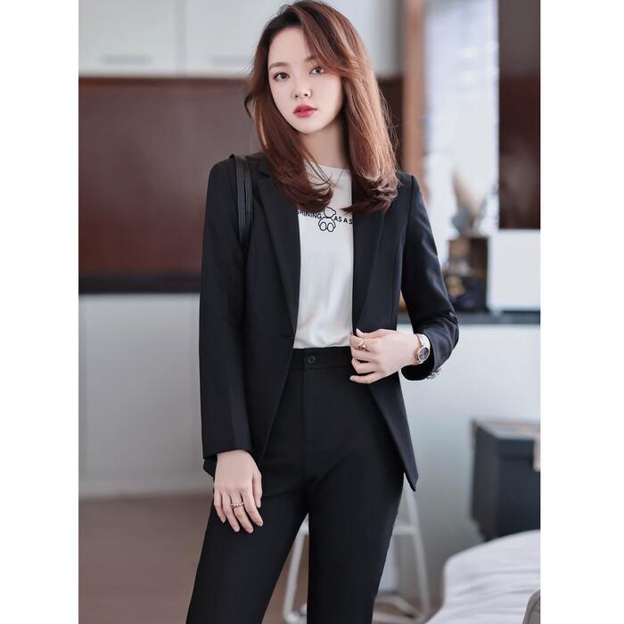 一着は持っておきたい、ベーシックなデザインのパンツスーツ。