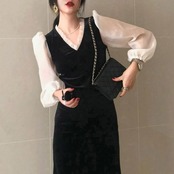 シアー×ベロアが新鮮で目を惹くワンピース。