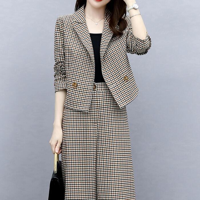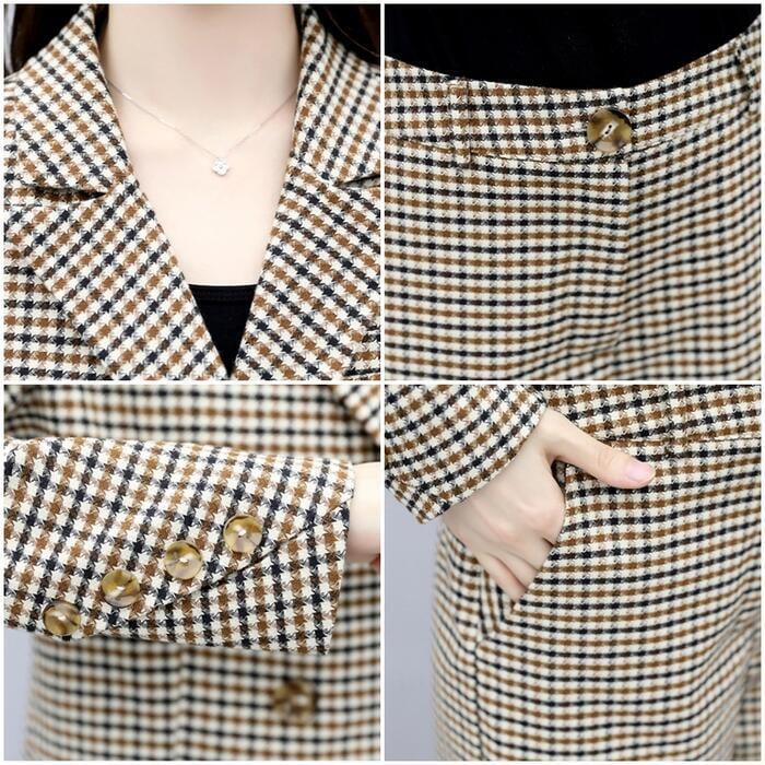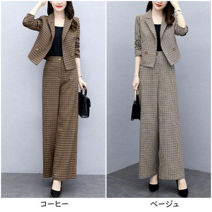 全2色 トラッド エレガント 大きいサイズ きれいめ入学式 ママスーツ レディース おしゃれ 卒業式 母 卒園式 入園式 ジャケット テーラード セットアップ セレモニー スーツ 七五三 お宮参り 母親 ママ チェック パンツ 長袖 ショート丈 ブラウン ベージュ 春 秋 冬 20代 30代 40代