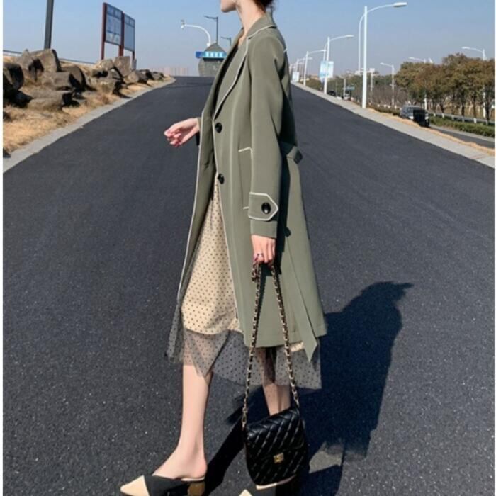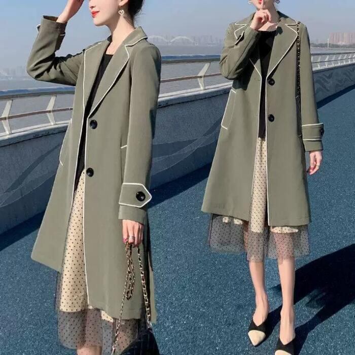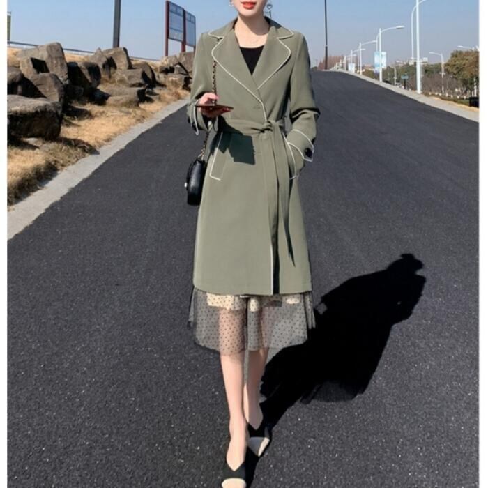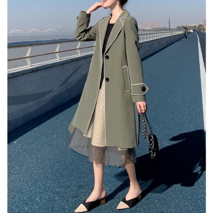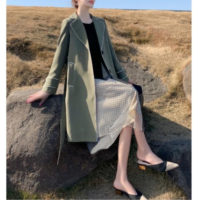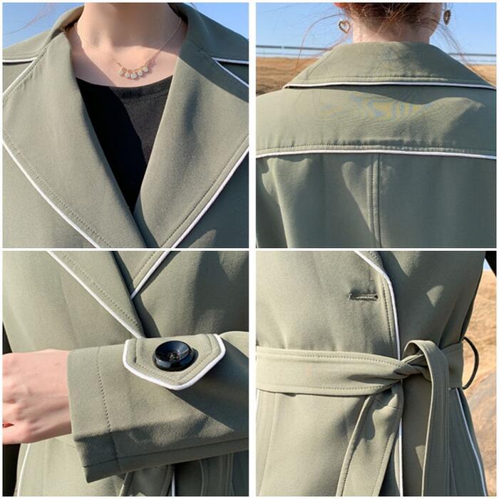 ゆったり 体型カバー 大きいサイズ アウター チェスターコート ジャケット スプリングコート トレンチ レディース エレガント きれいめ カジュアル おしゃれ 長袖 大人 可愛い パイピング ベルト シンプル フェミニン グリーン 緑 春 秋 冬 20代 30代 40代 50代