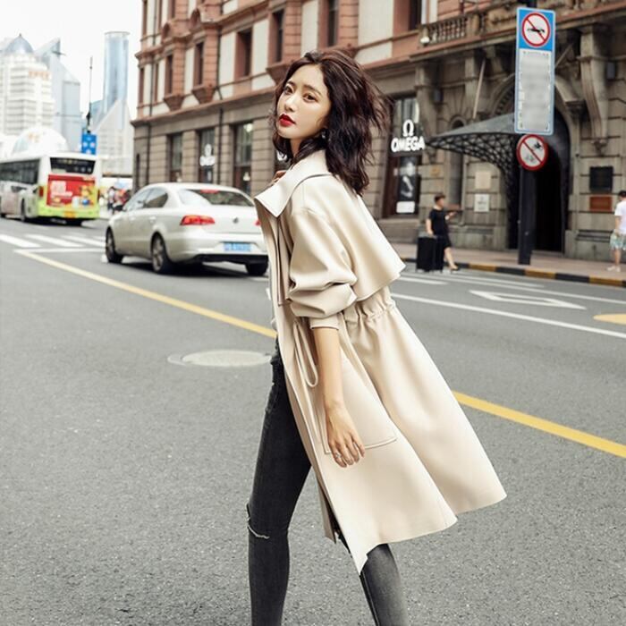 ゆったり アウター ステンカラーコート ジャケット スプリングコート トレンチ レディース エレガント きれいめ カジュアル おしゃれ 長袖 大人 可愛い シンプル ドロスト フェミニン 体型カバー ベージュ 春 秋 冬 20代 30代 40代 50代