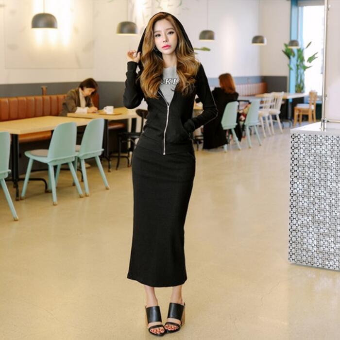 全3色 大きいサイズセットアップ 2点セット トップス スカート 長袖 パーカー フーディ ロゴ ミモレ丈 きれいめ カジュアル おしゃれ 大人 可愛い リラックス タイト スリム 楽ちん ウエストゴム スポーティ グレー ブラック 黒 ピンク 春 秋 冬 20代 30代 40代