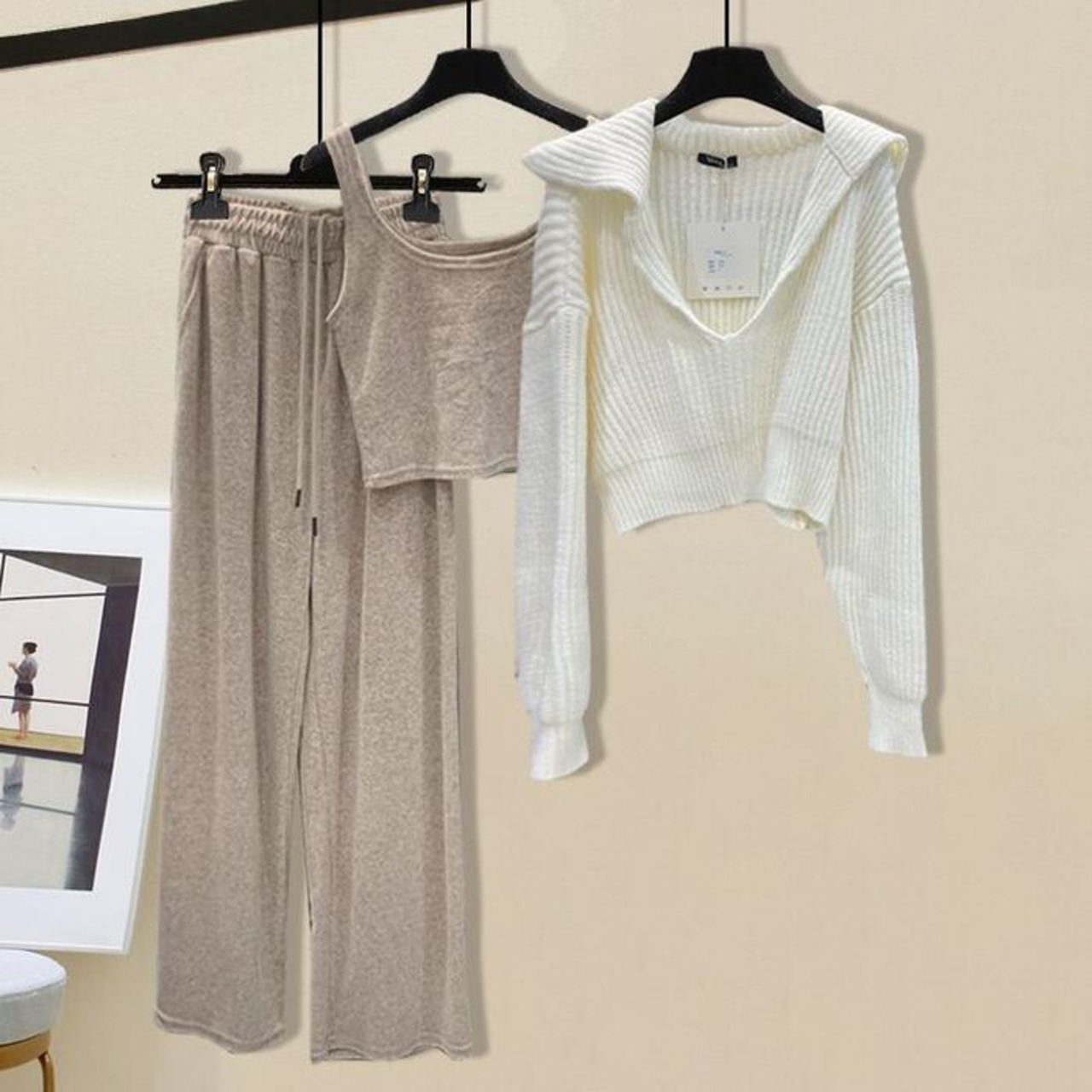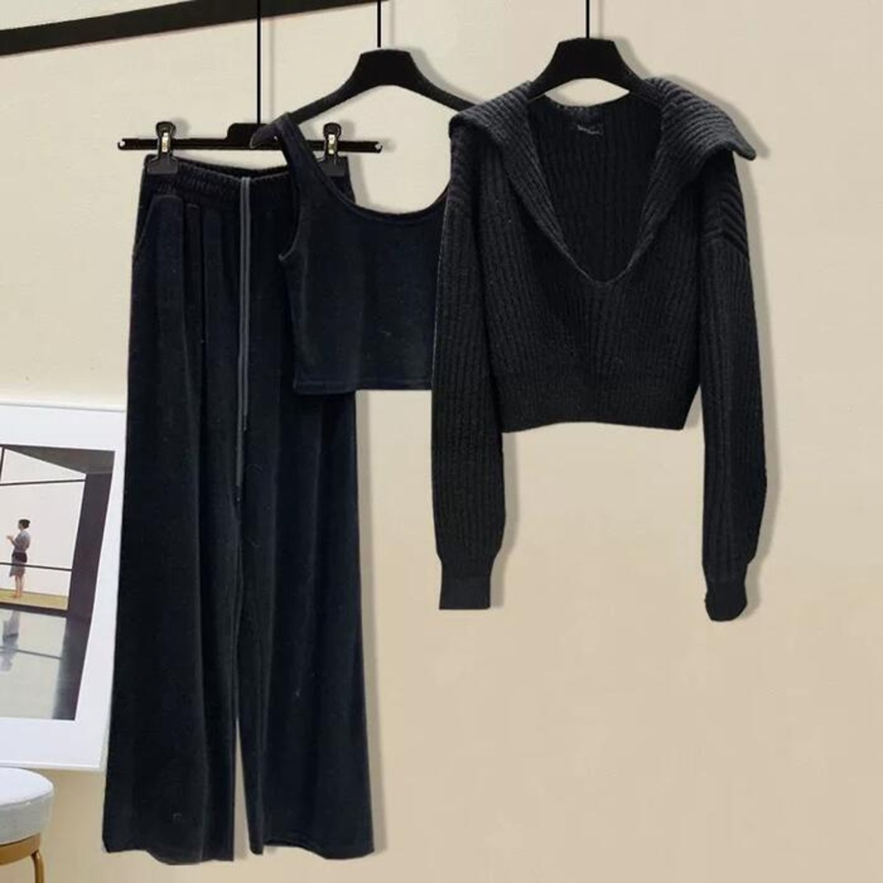 長袖トップス、タンクトップ、ロングパンツの3点セット。