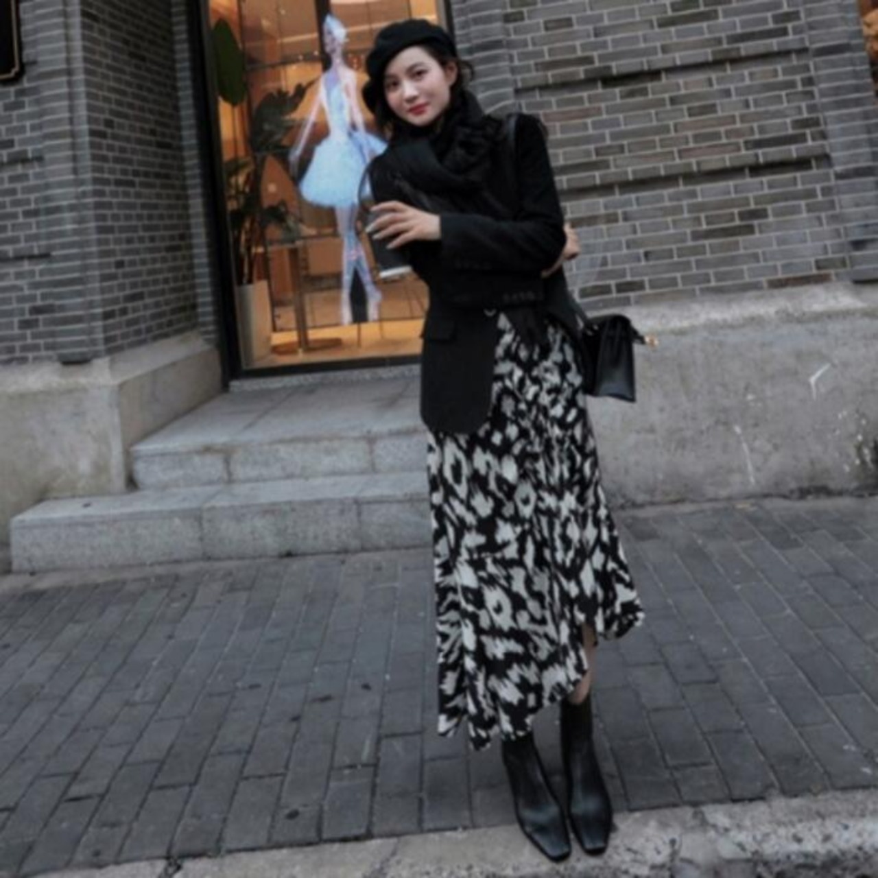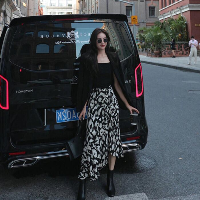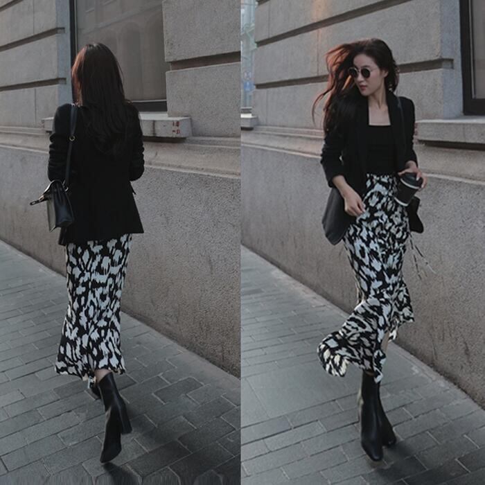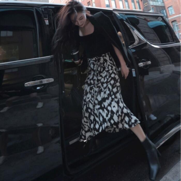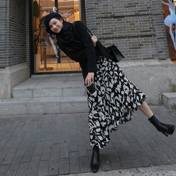 アニマルライクなプリント柄が可愛いミモレ丈スカート。