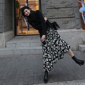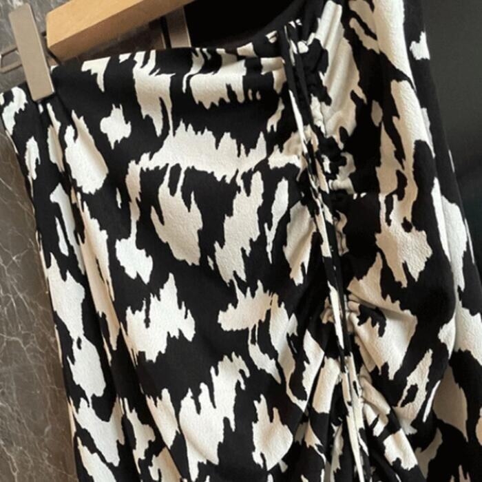 大きいサイズスカート ボトムス アシンメトリー プリント レディース エレガント きれいめ カジュアル おしゃれ ミモレ丈 大人 可愛い フェミニン ギャザー バイカラー 体型カバー 韓国 ブラック 黒 春 夏 秋 冬 20代 30代 40代 50代