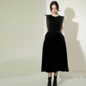 袖を透け感のある素材に切り替えたベロアワンピース。