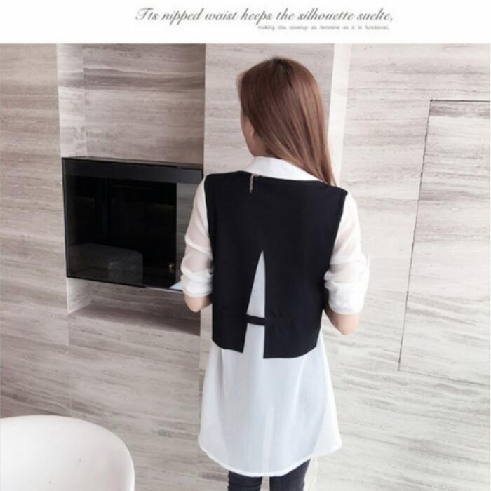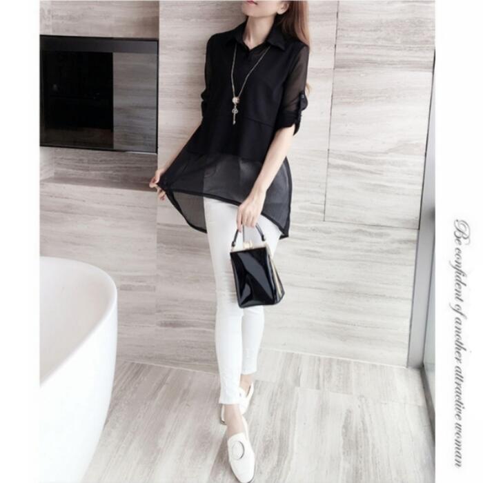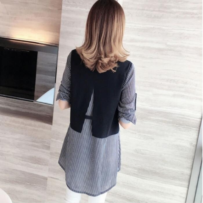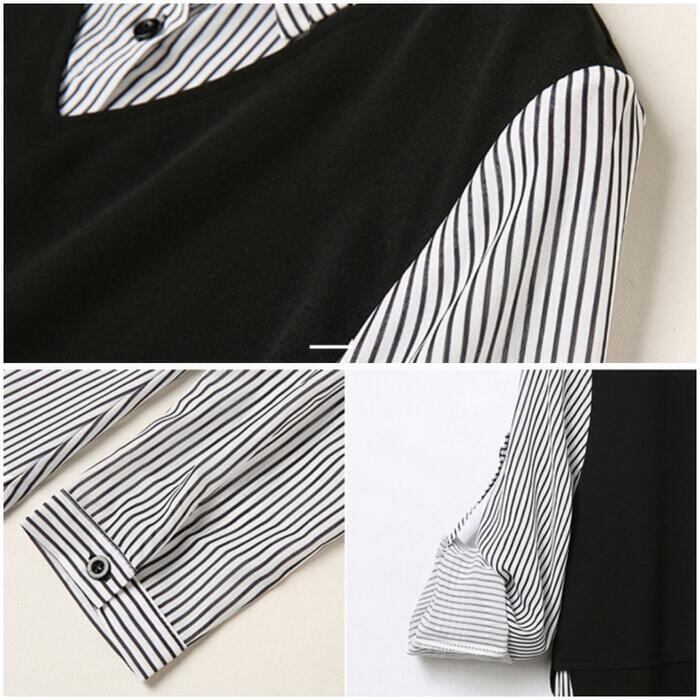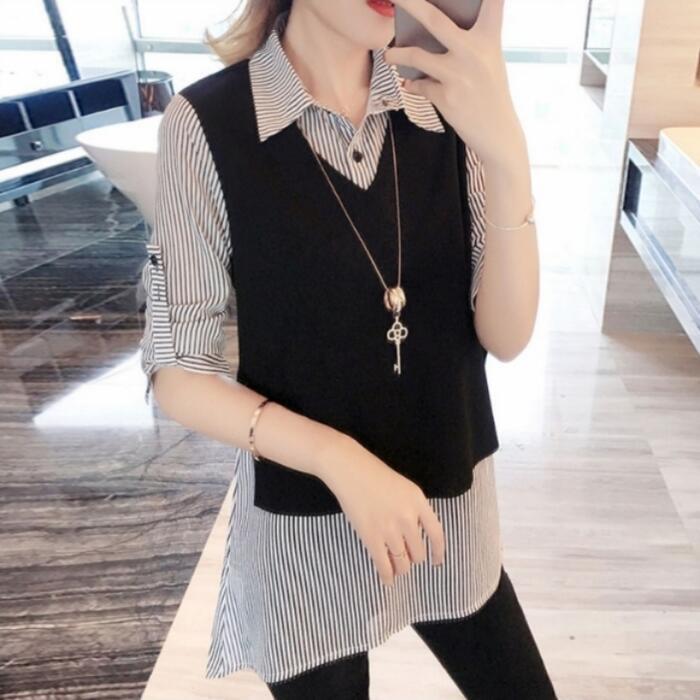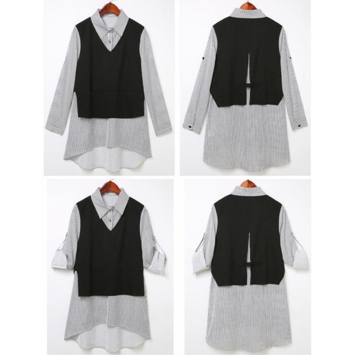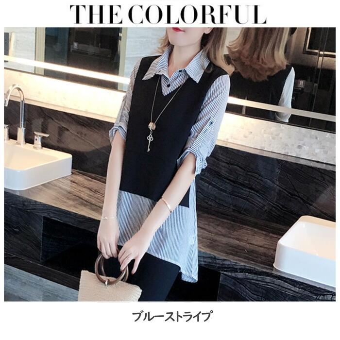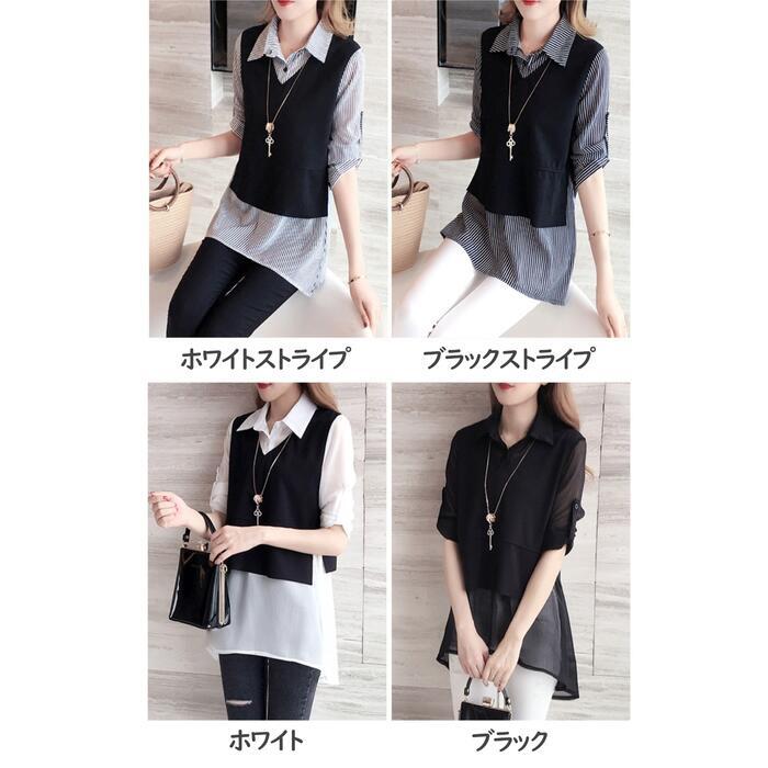 全5色 大きいサイズ トップス シャツ ブラウス レイヤード風 レディース きれいめ カジュアル おしゃれ 長袖 大人 可愛い 透け感 ストライプ フェミニン ゆったり 体型カバー ブラック 黒 ブルー 青 グレー ホワイト 白 春 秋 夏 20代 30代 40代 50代
