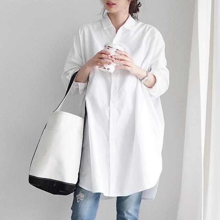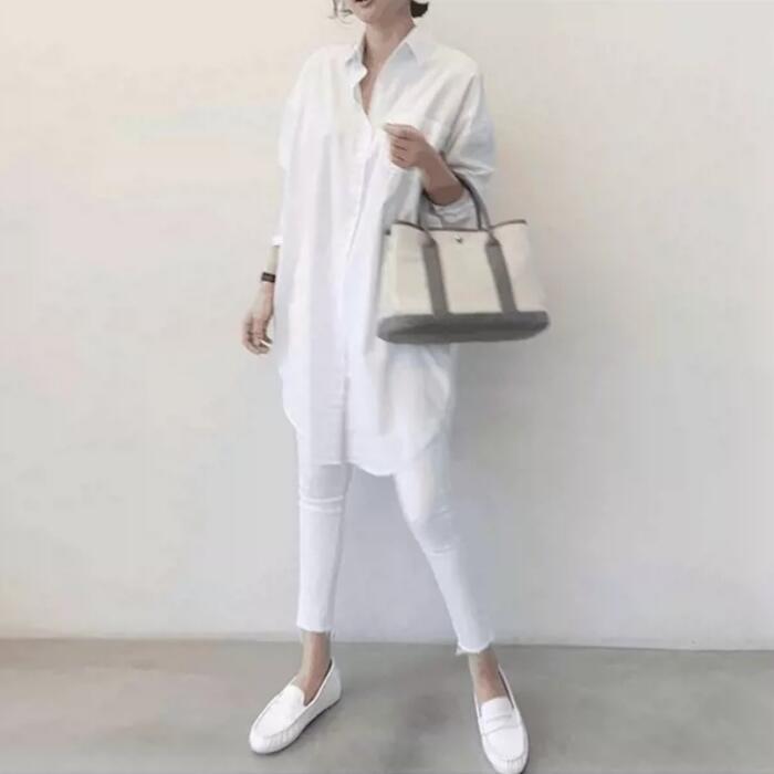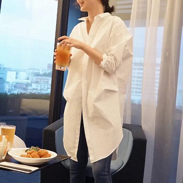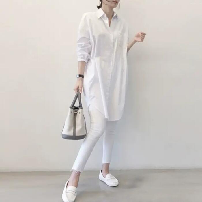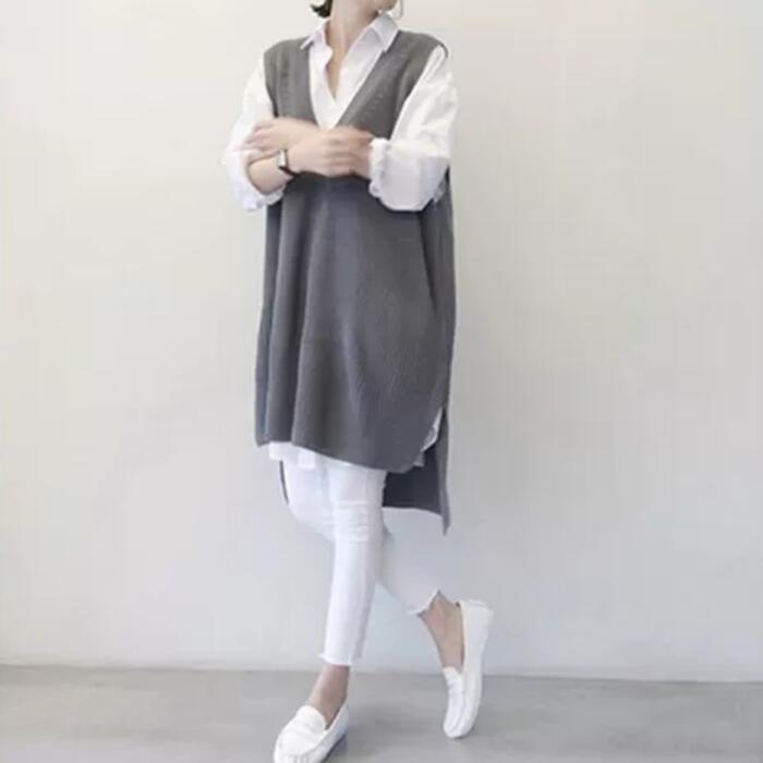 全2種 トップス シャツ ブラウス ベスト ジレ レディース きれいめ カジュアル おしゃれ 長袖 大人 可愛い フェミニン ゆったり 体型カバー 重ね着 ロング丈 チュニック 大きいサイズ グレー ホワイト 白 春 秋 夏 20代 30代 40代 50代