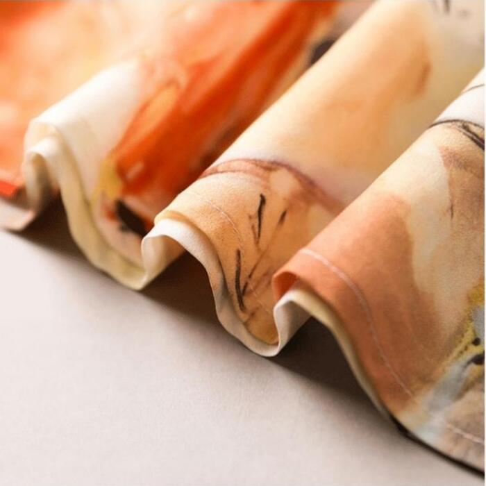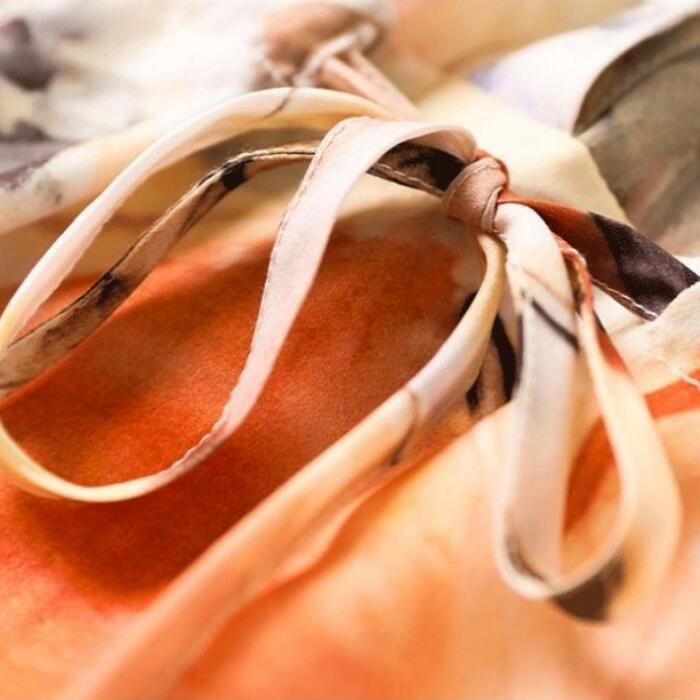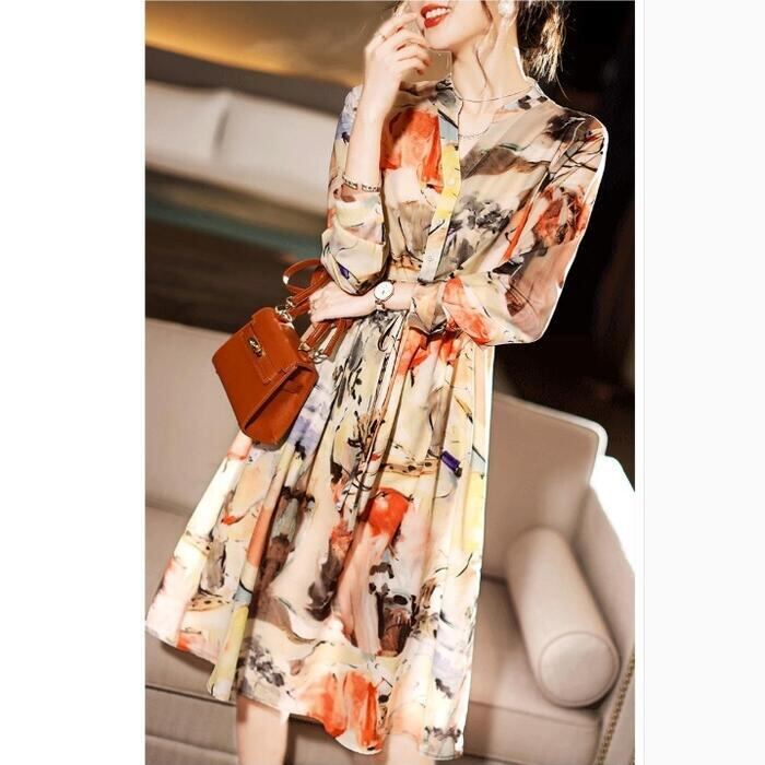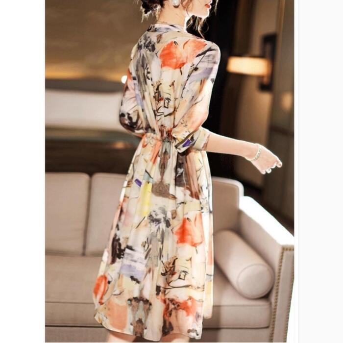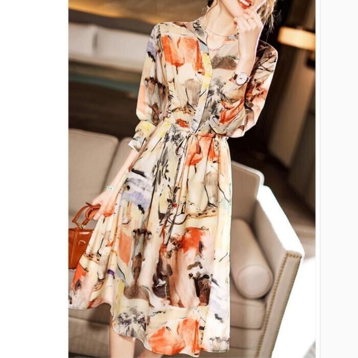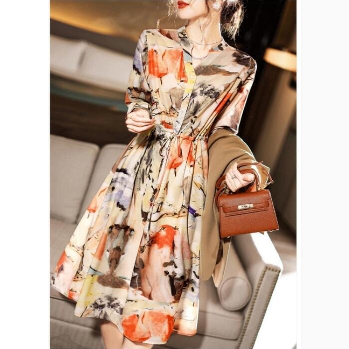 洗練された華やかさを感じさせる水彩柄ワンピース。