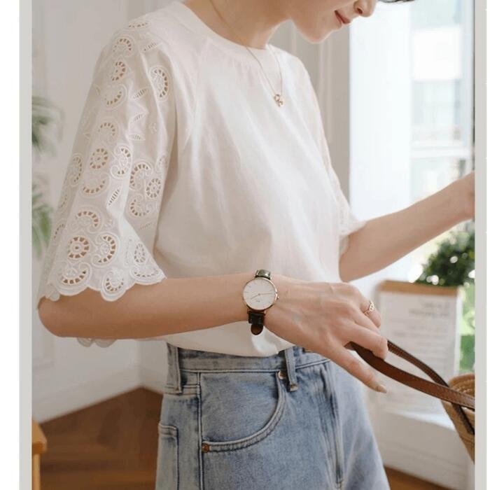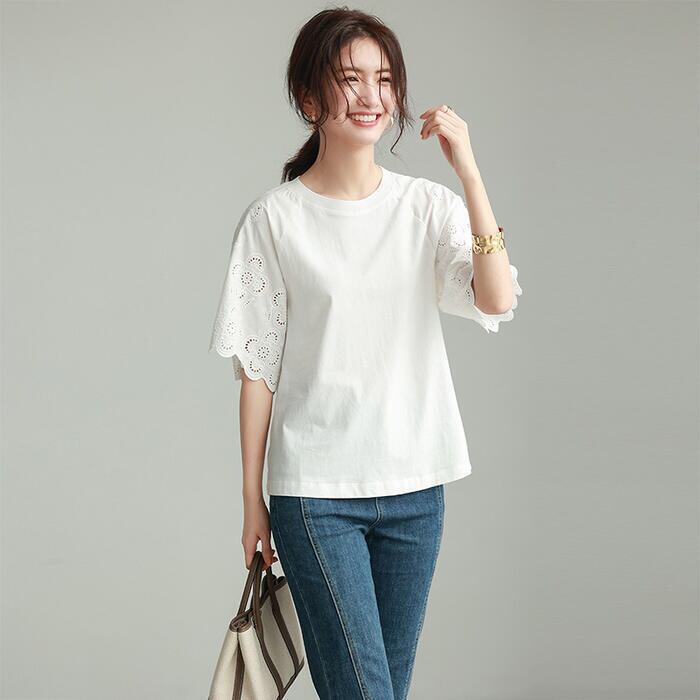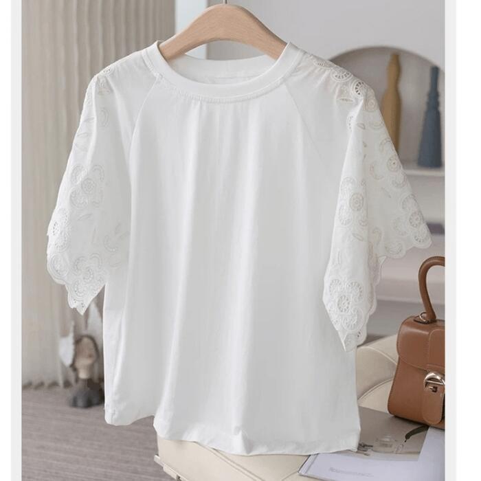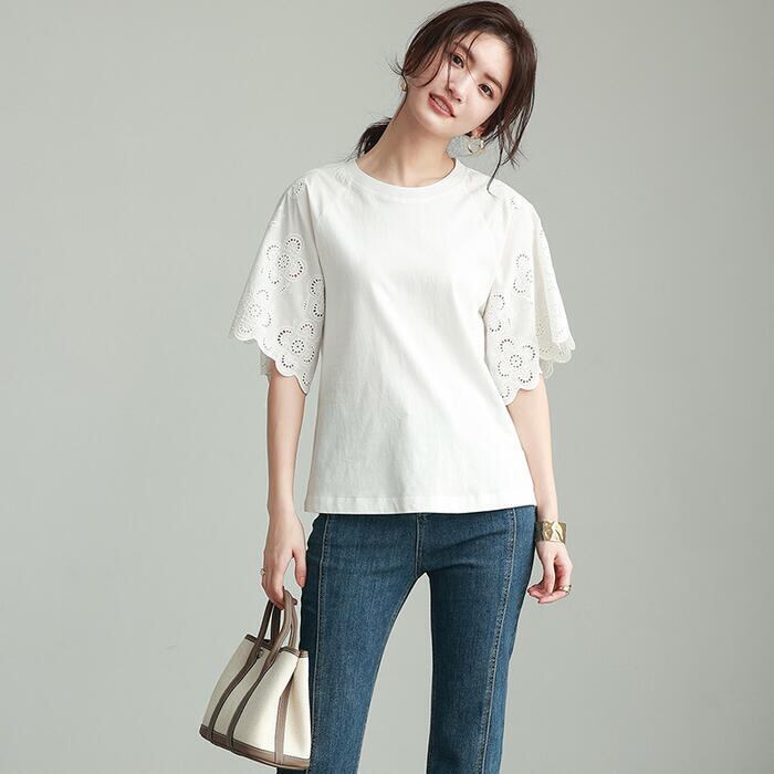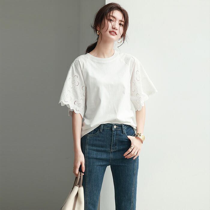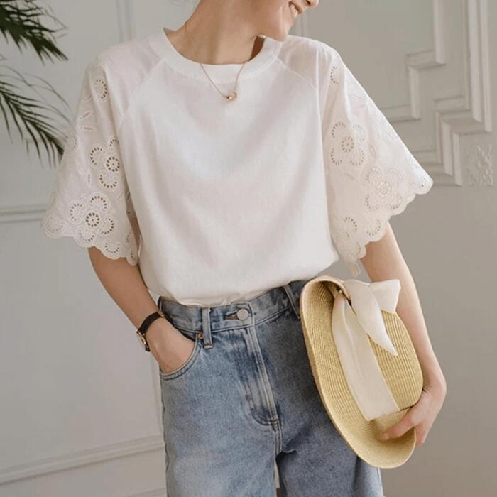 ボリューム感のあるレース袖が可愛いTシャツ。