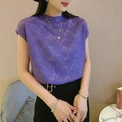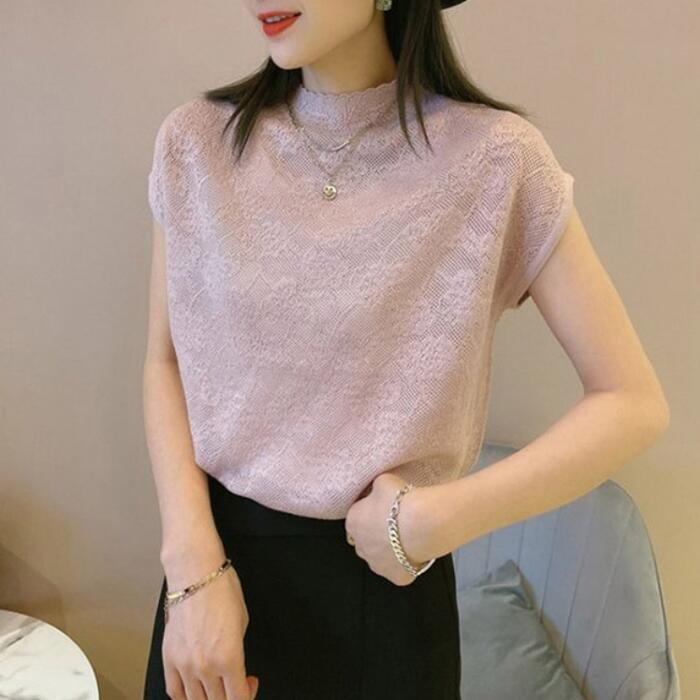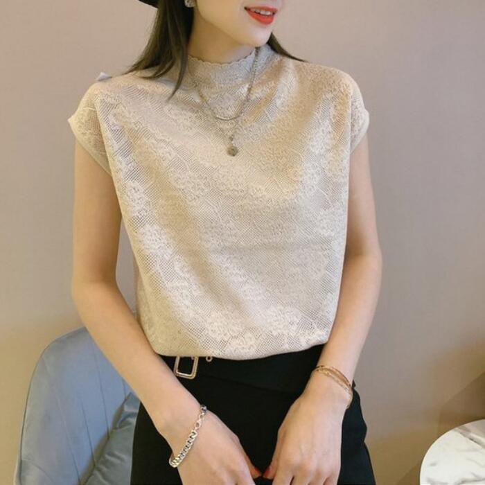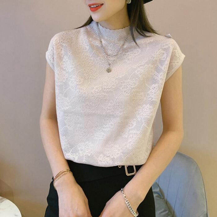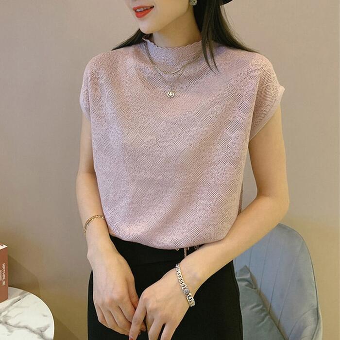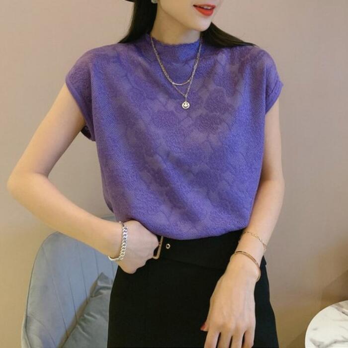 全5色 大きいサイズ トップス シャツ Tシャツ レース カットソー フレンチスリーブ エレガント レディース きれいめ カジュアル ハイネック 半袖 大人 可愛い フェミニン 体型カバー パープル ピンク ベージュ ブラック 黒 ホワイト 白 春 秋 夏 20代 30代 40代 50代