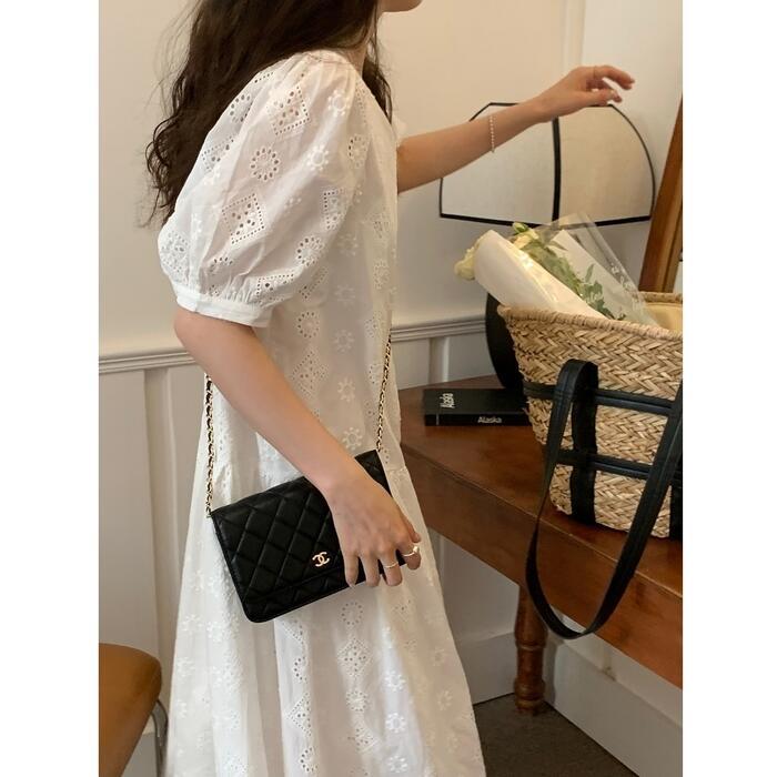 カットワークレースが大人可愛いゆったりシルエットのワンピース。