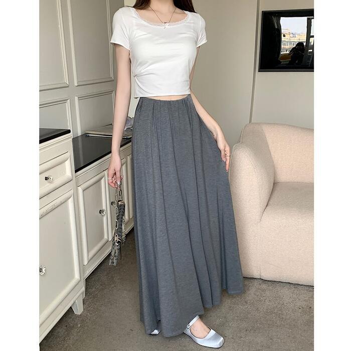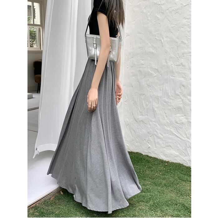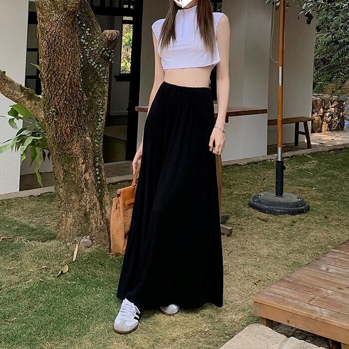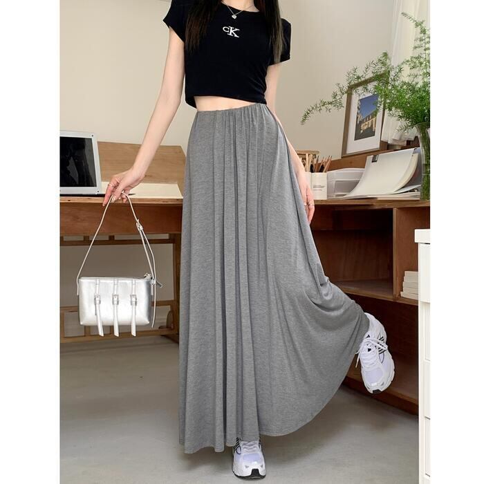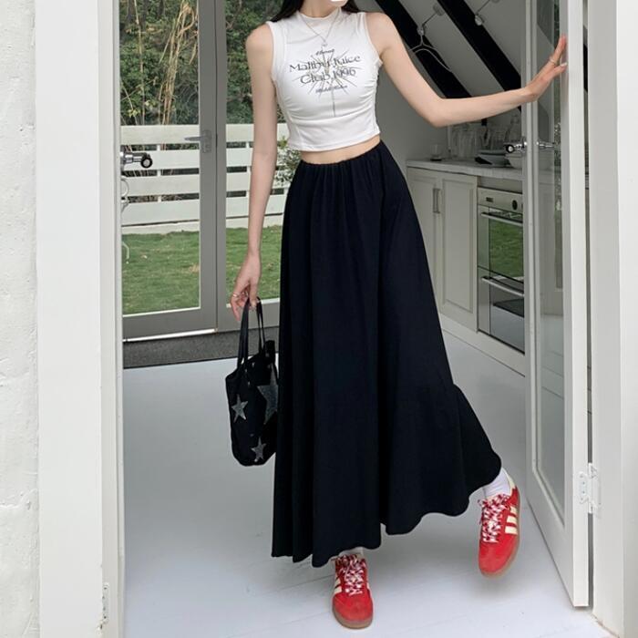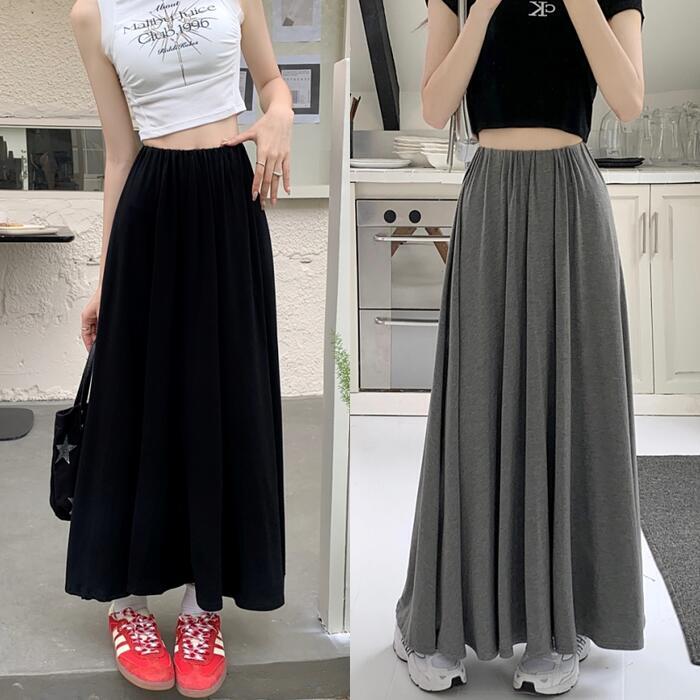 全2色 パンツ ボトムス ワイドパンツ キュロット スカートパンツ レディース きれいめ カジュアル フレア おしゃれ ロング丈 大人 可愛い フェミニン ゆったり 体型カバー ウエストゴム リラックス 韓国 グレー ブラック 黒 春 夏 秋 20代 30代 40代 50代