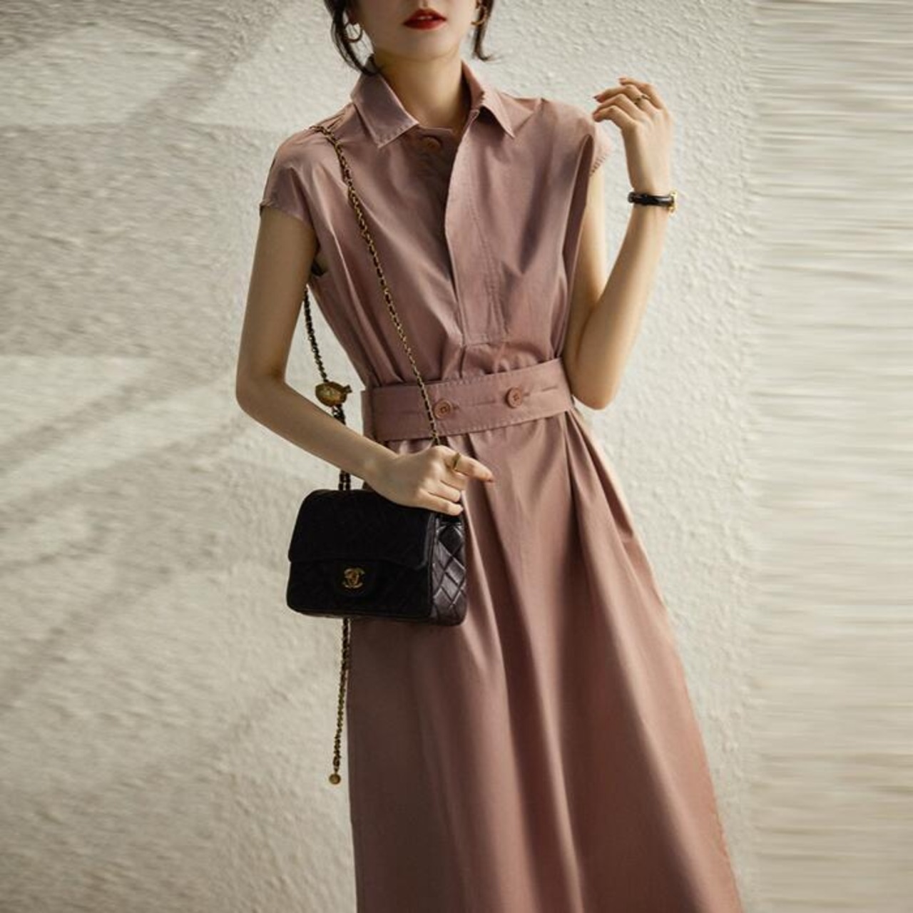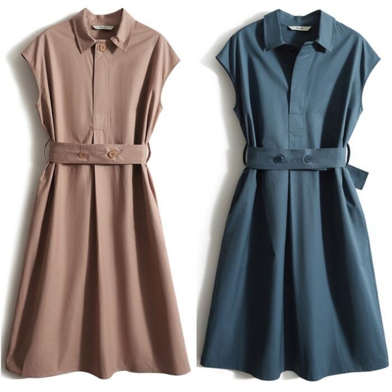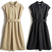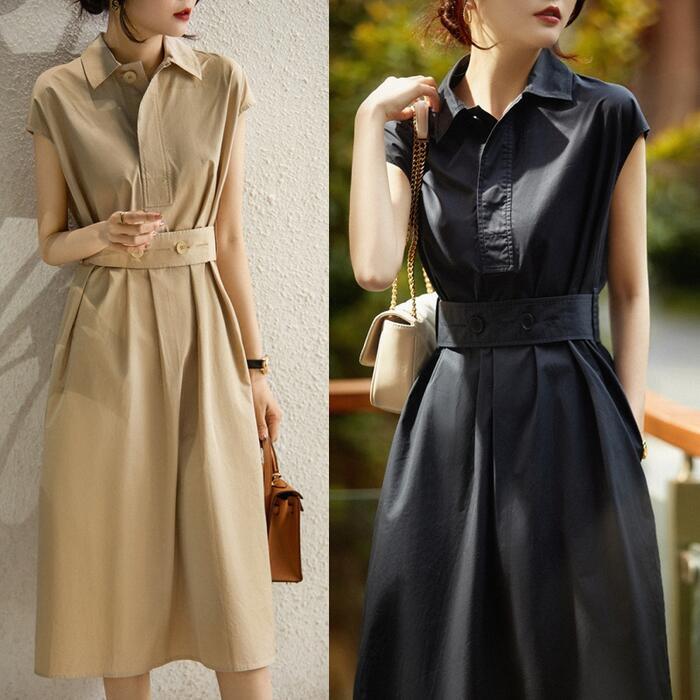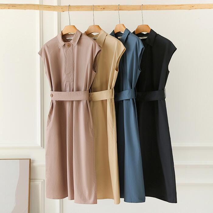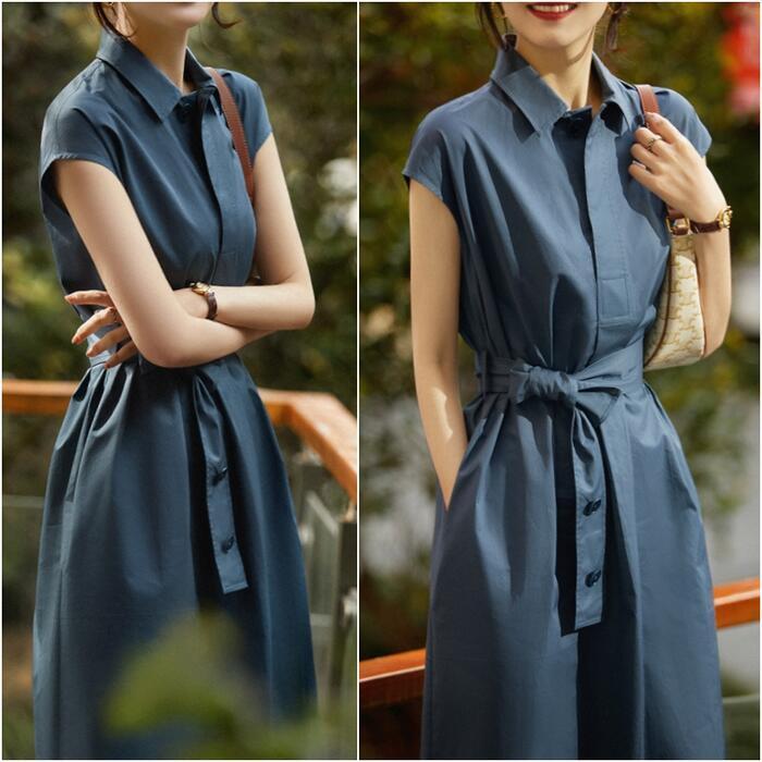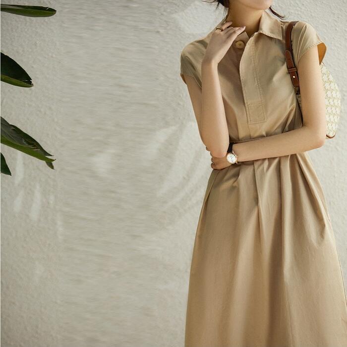 フレンチスリーブがすっきりとした印象のシャツワンピース。