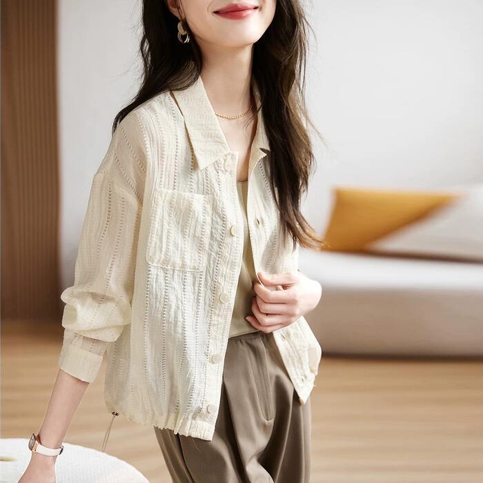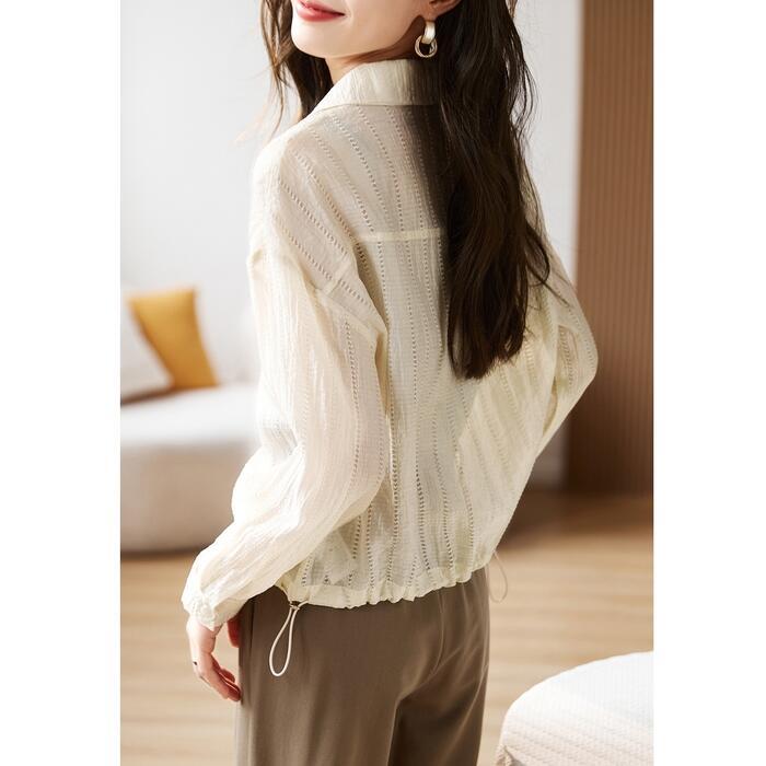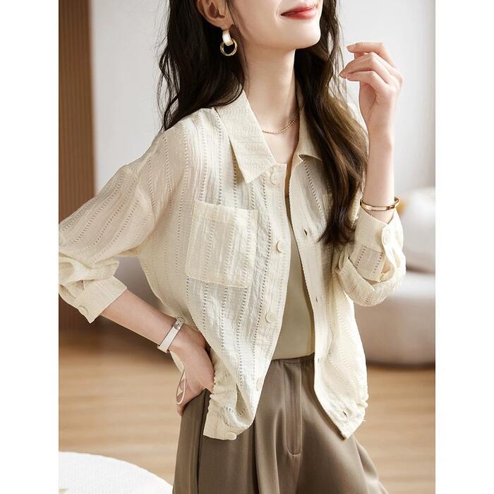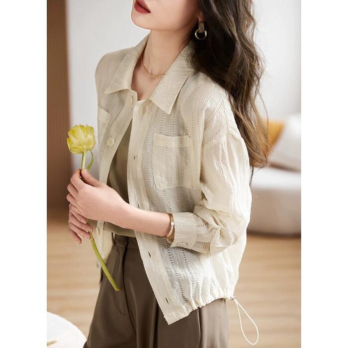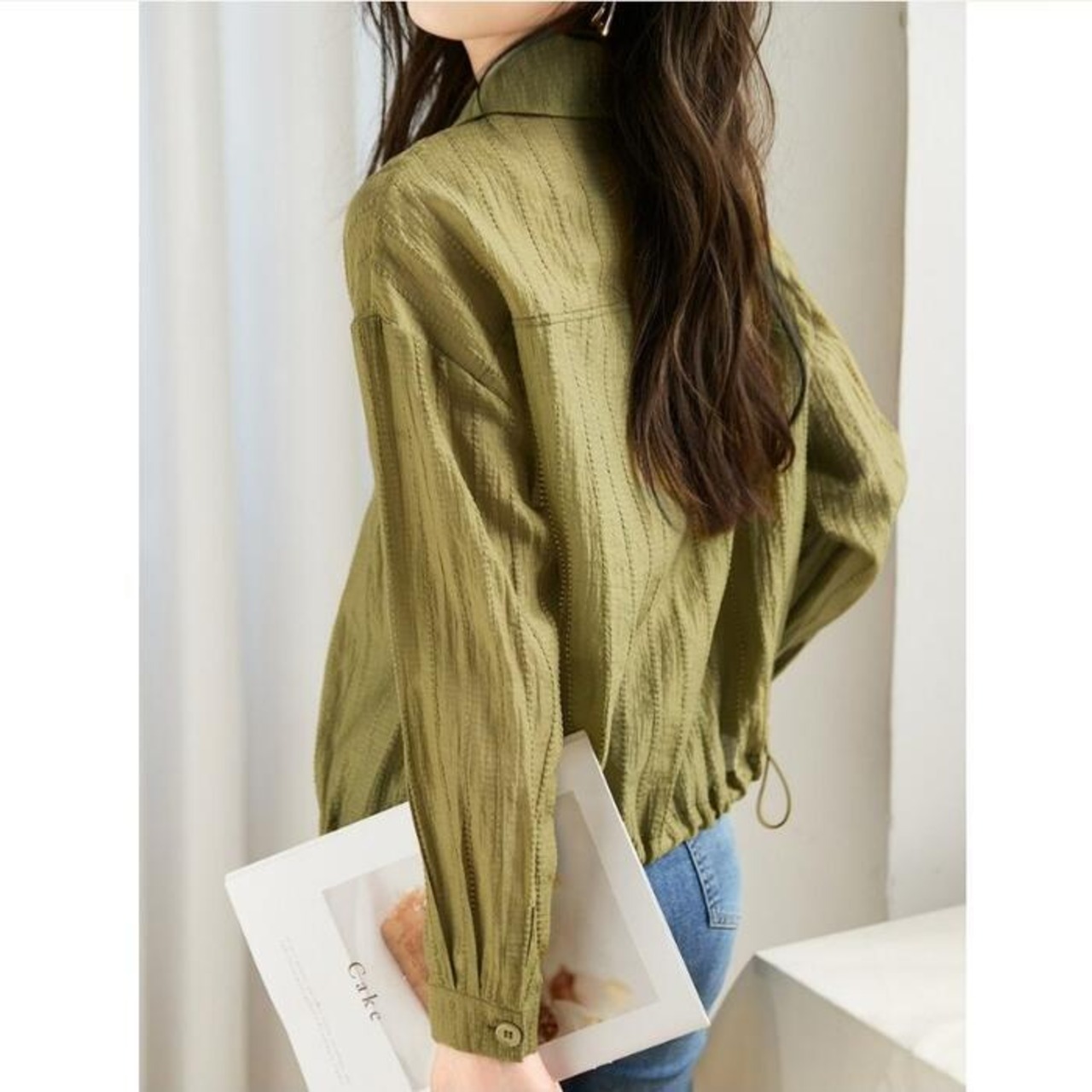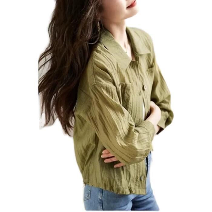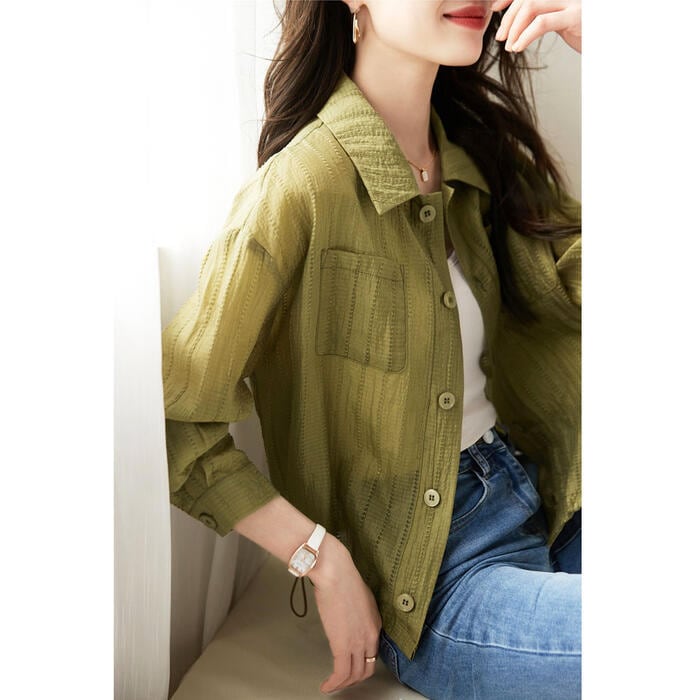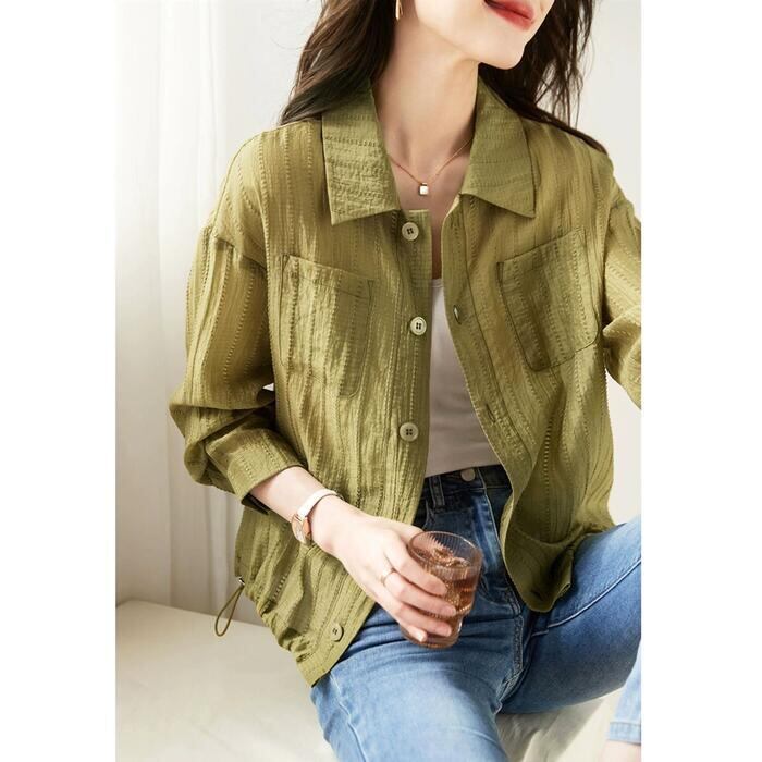 全2色 大きいサイズ トップス ブラウス シャツ ジャケット カーディガン 羽織 エレガント レディース きれいめ カジュアル おしゃれ 長袖 大人 可愛い フェミニン シンプル ナチュラル 薄手 体型カバー 日焼け防止 ベージュ グリーン 緑 春 秋 夏 20代 30代 40代 50代
