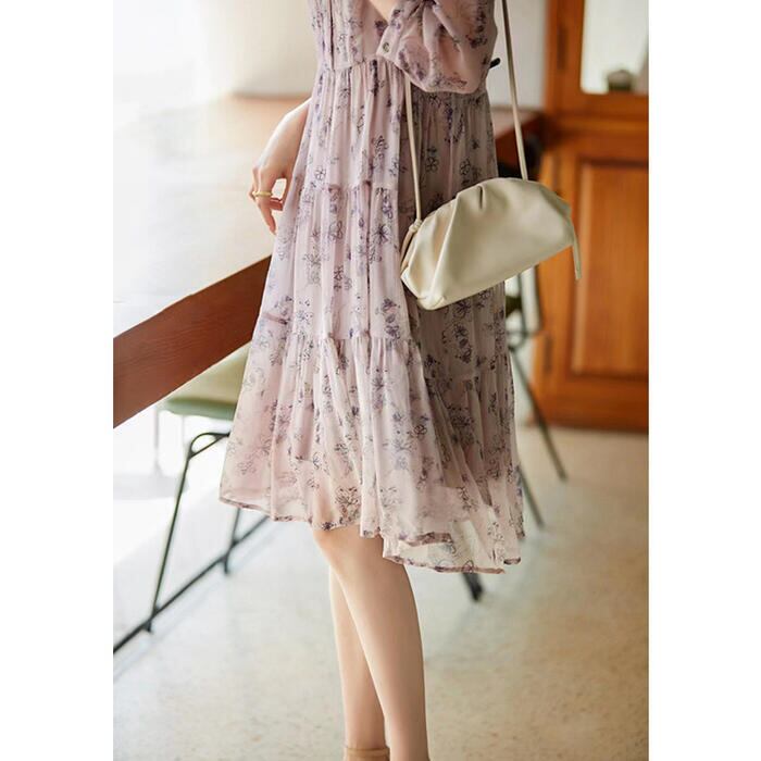 ノスタルジックなフラワープリント柄ワンピース。