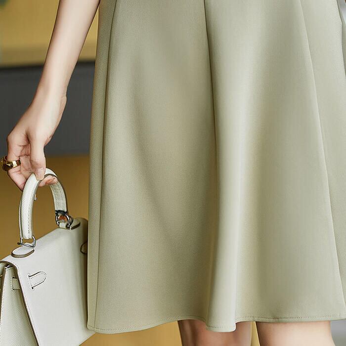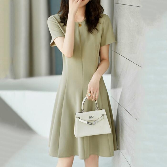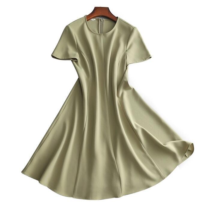 全3色 大きいサイズ ワンピース ドレス 袖あり エレガント レディース きれいめ カジュアル おしゃれ 半袖 大人 可愛い フェミニン ひざ丈 シンプル ナチュラル Aライン 体型カバー お呼ばれ オケージョン グリーン グレー ブラック 黒 春 秋 夏 20代 30代 40代 50代