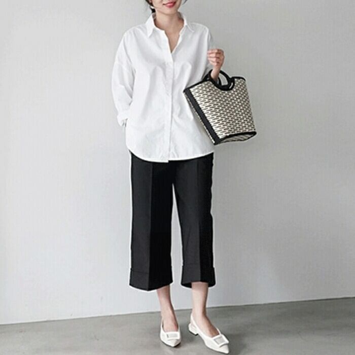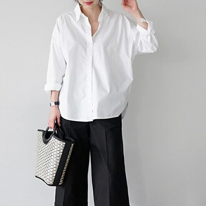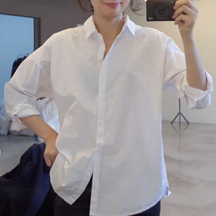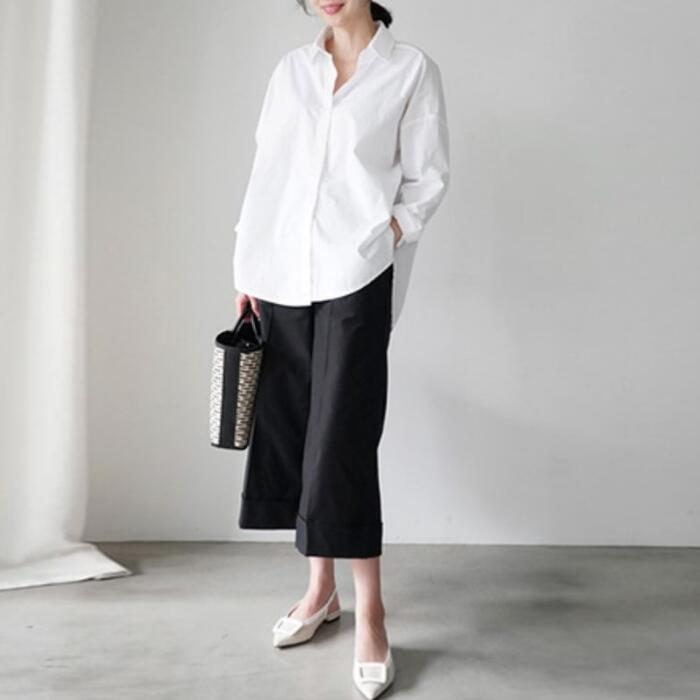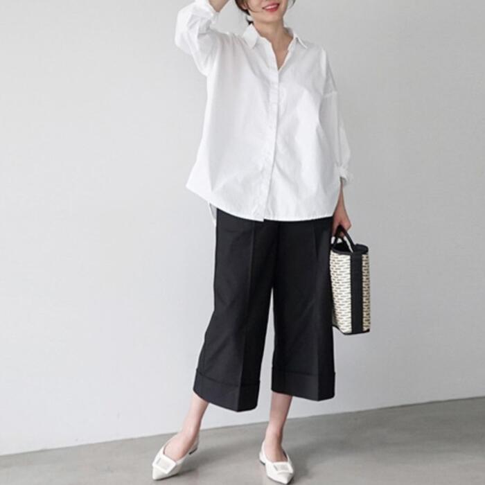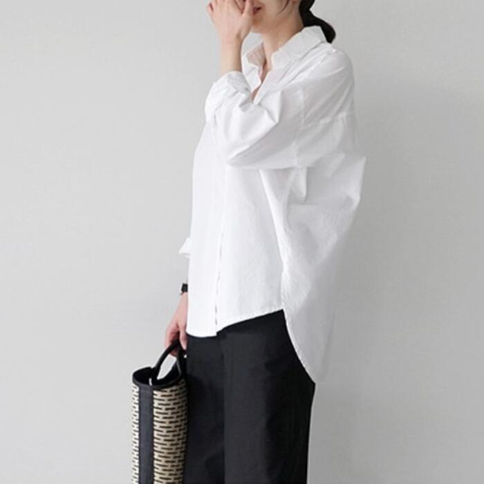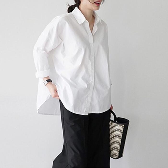 ゆったりオーバーサイズのホワイトシャツ。