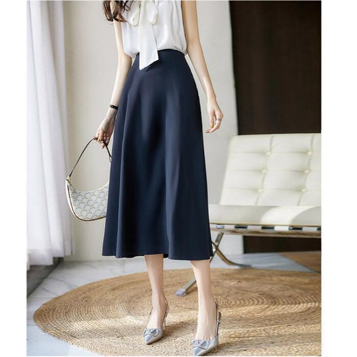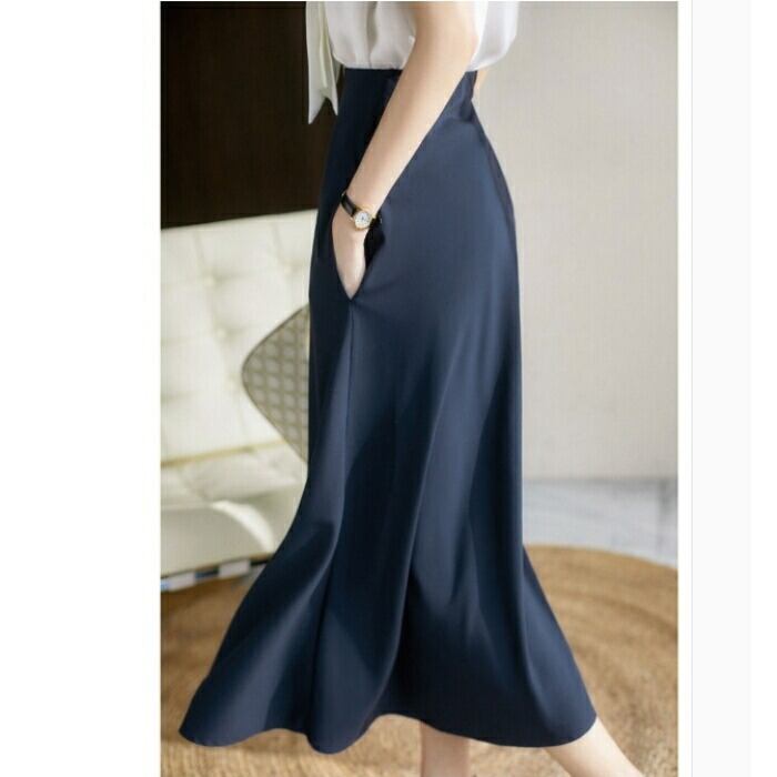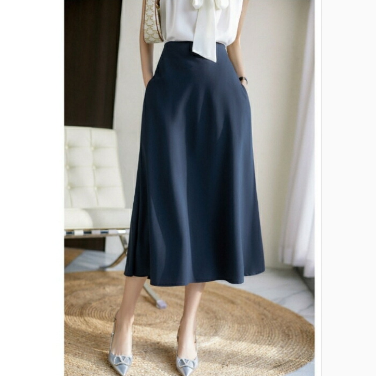 スカート ボトムス フレアスカート レディース きれいめ カジュアル フレア おしゃれ ミモレ丈 大人 可愛い フェミニン 体型カバー シンプル ベーシック ポケット 上品 オフィス 通勤 ネイビー 春 夏 秋 20代 30代 40代 50代