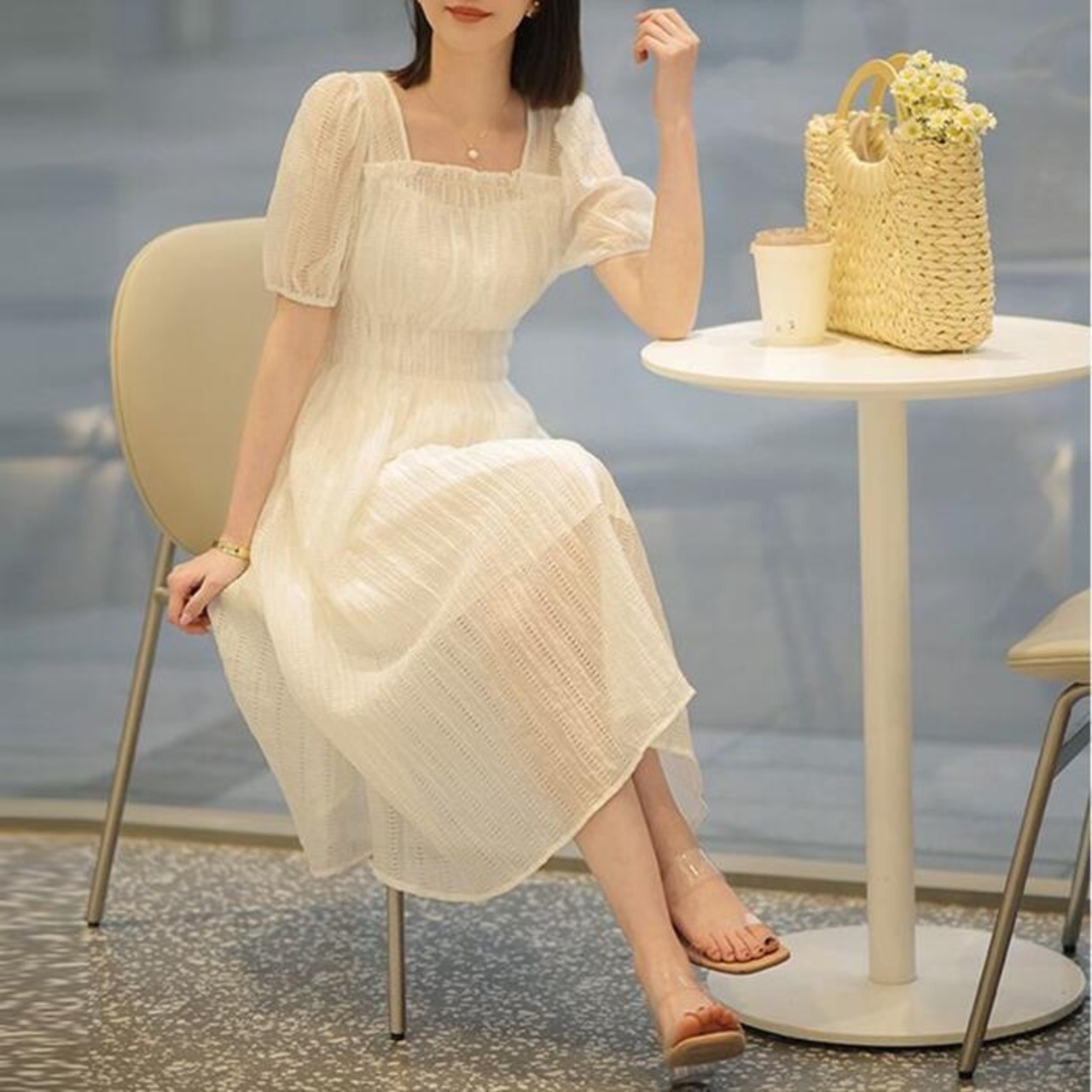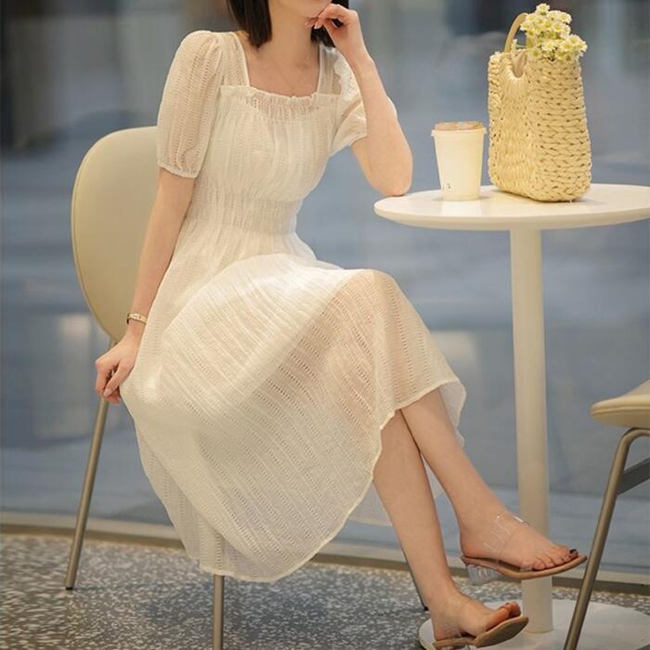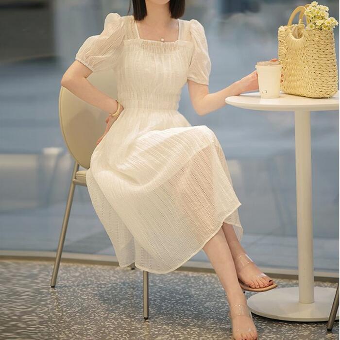 エアリーな風合いが涼しげなスクエアネックレースワンピース。