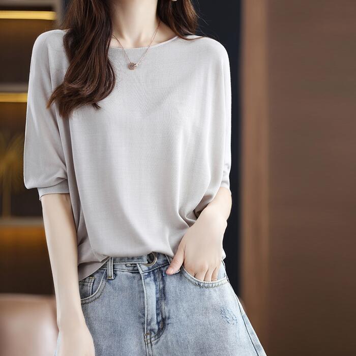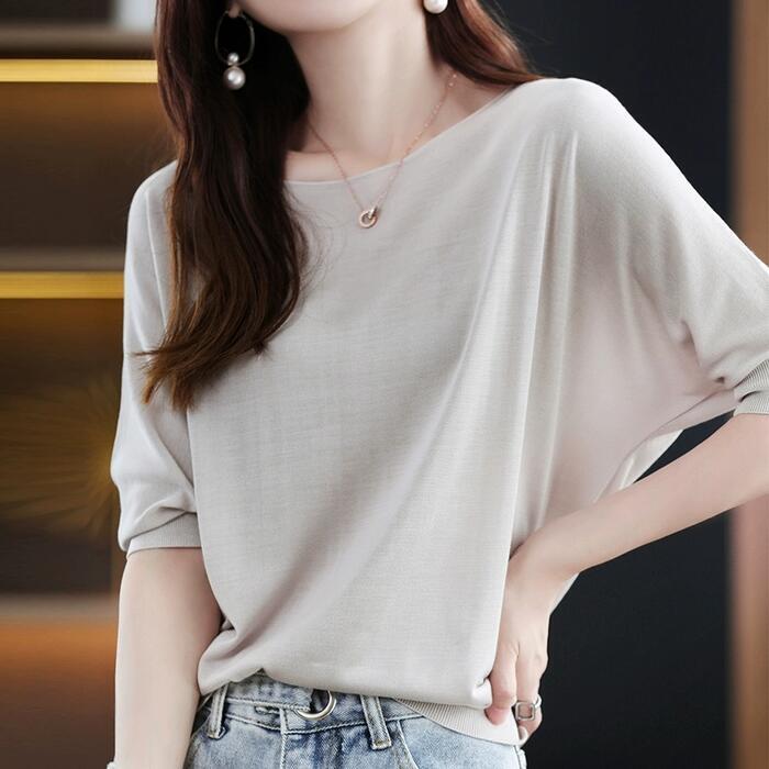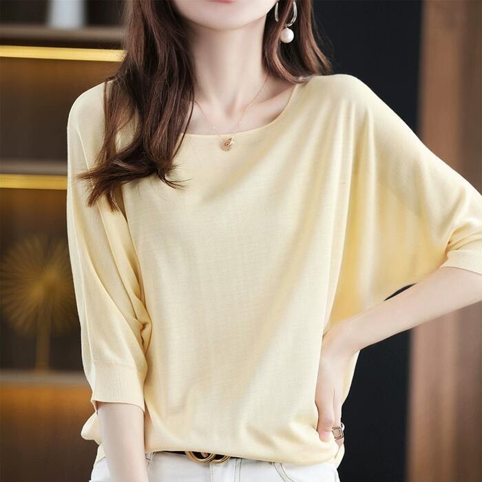 全4色 大きいサイズ トップス ブラウス Tシャツ カットソー レディース きれいめ カジュアル 五分袖 おしゃれ 大人 可愛い フェミニン シンプル ゆったり 体型カバー ドルマンスリーブ 韓国 ブルー 青 イエロー グレー ブラック 黒 春 夏 秋 20代 30代 40代 50代