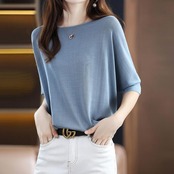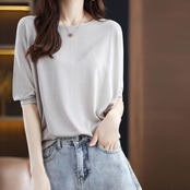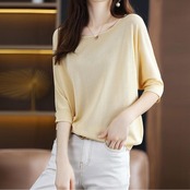 通気性の良いさらりとした生地が着心地良い五分袖Tシャツ。