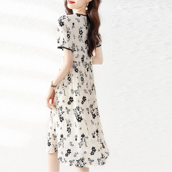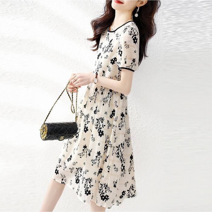 大きいサイズ ワンピース 花柄 ボーダー フラワー ワンピ ドレス レディース エレガント きれいめ カジュアル おしゃれ ひざ丈 大人 可愛い フェミニン Aライン フレア ナチュラル 楽ちん 韓国 ホワイト 白 春 夏 秋 冬 20代 30代 40代 50代
