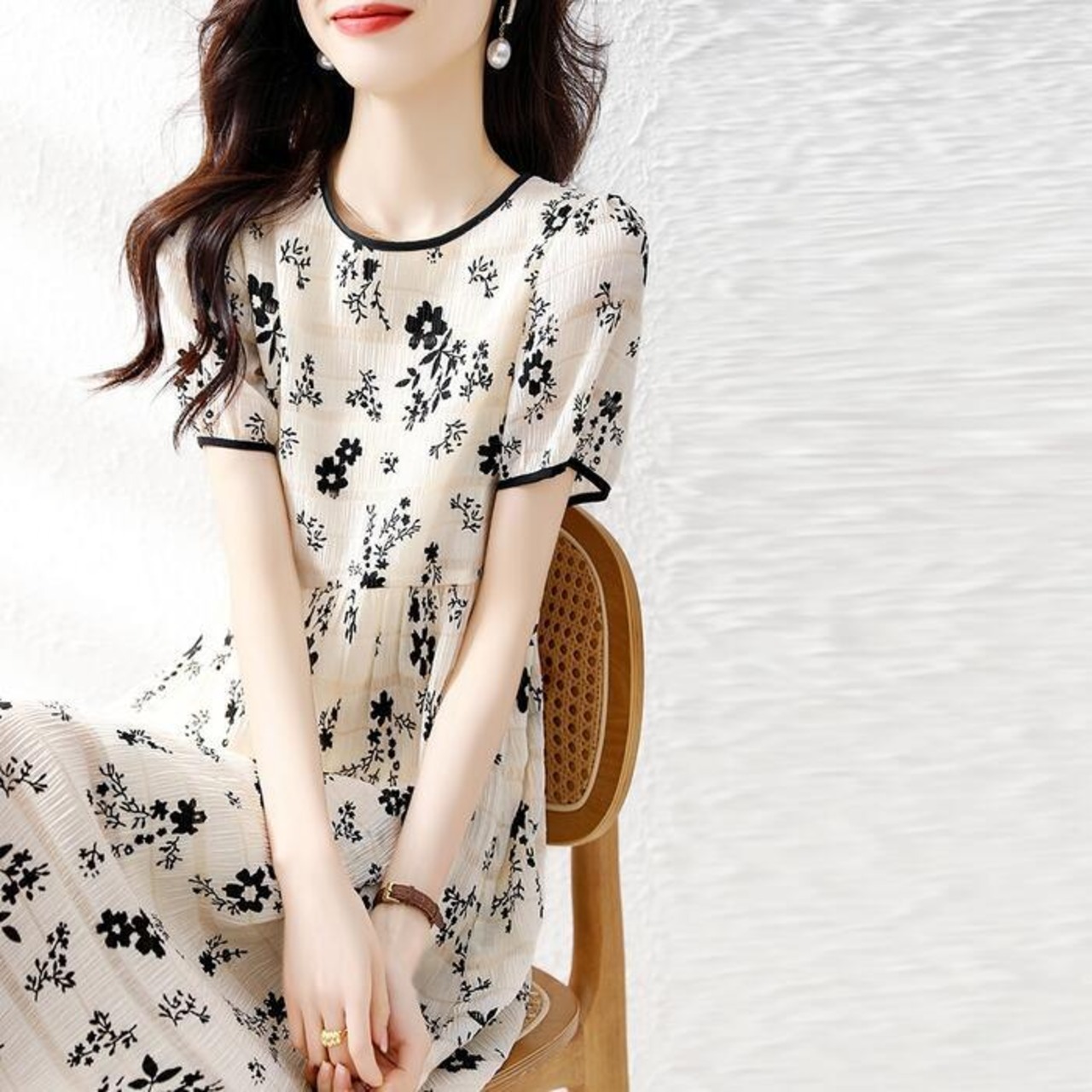 体型カバーもでき、ご近所からお出かけまで幅広く着られる使い勝手のよい一枚です。