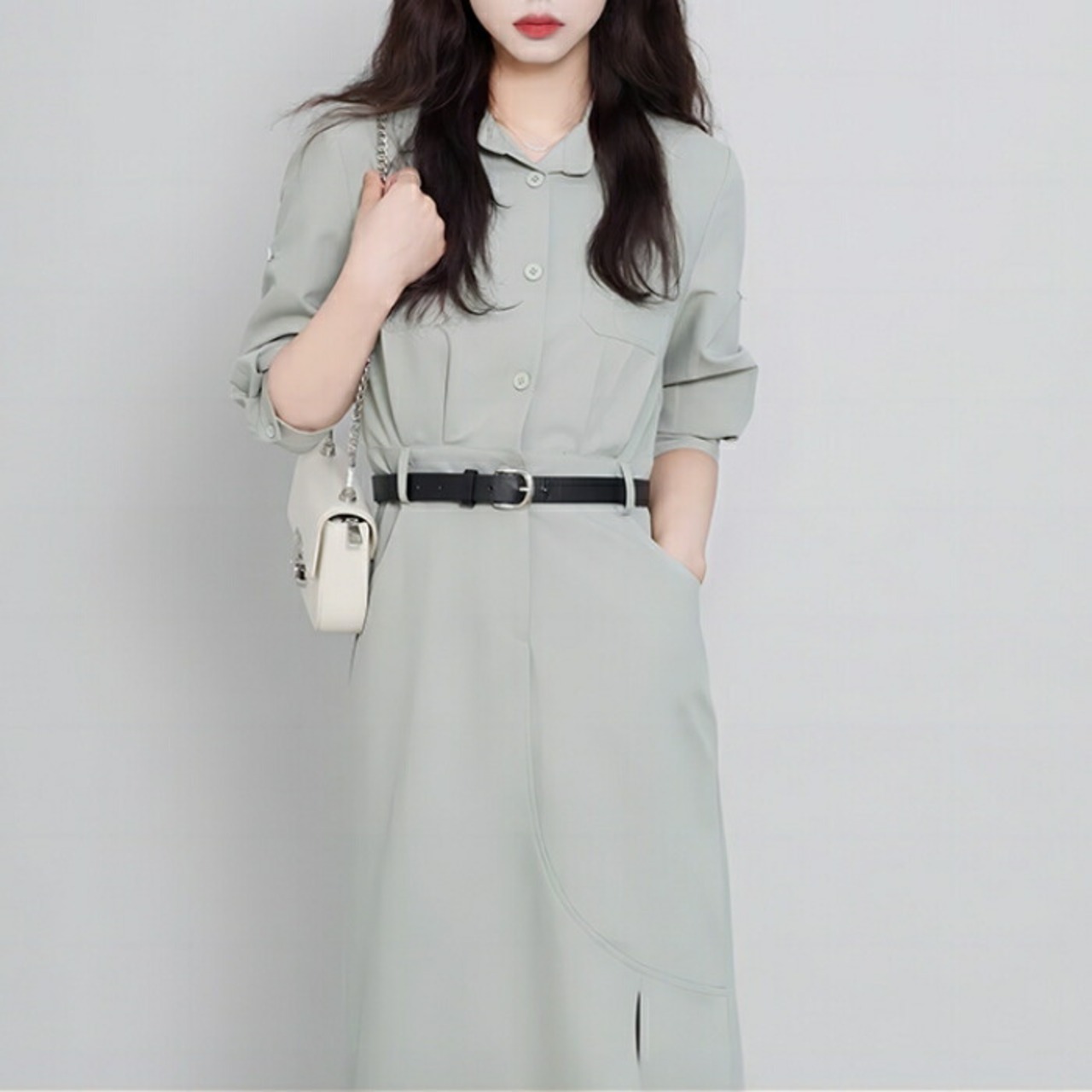 ウエストベルトでスタイルアップが叶うシャツワンピース。