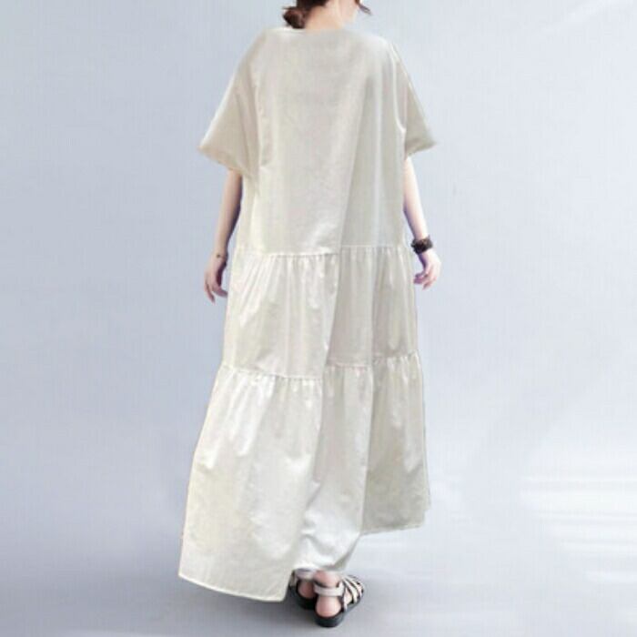 ゆとりのあるシルエットのティアードワンピース。