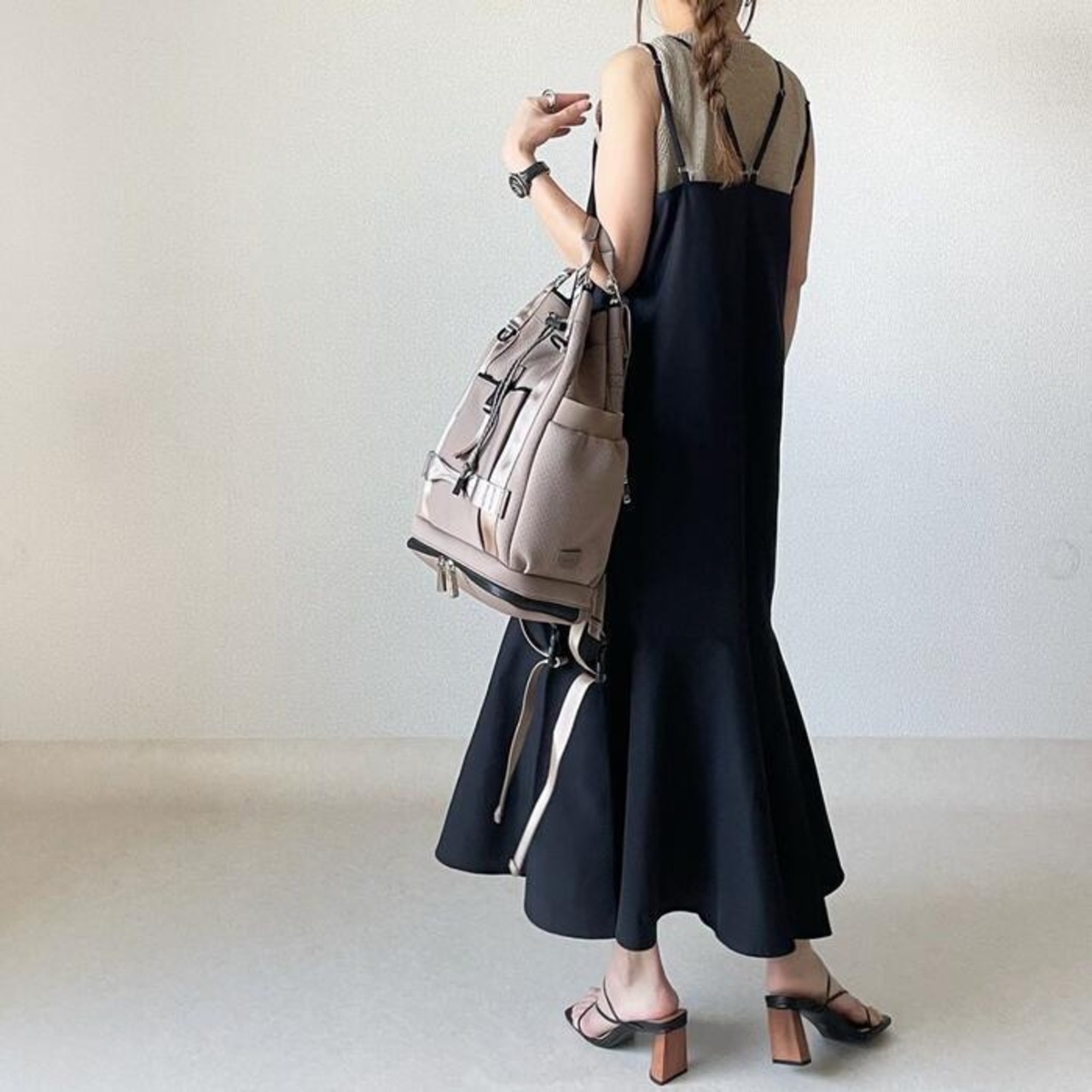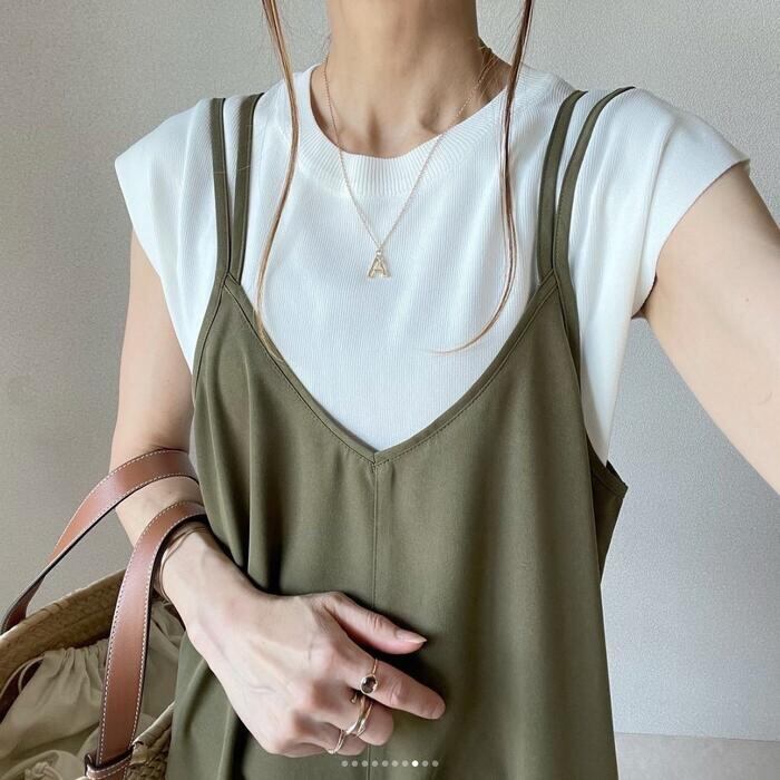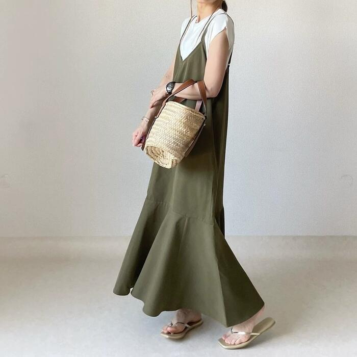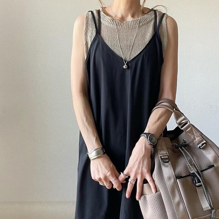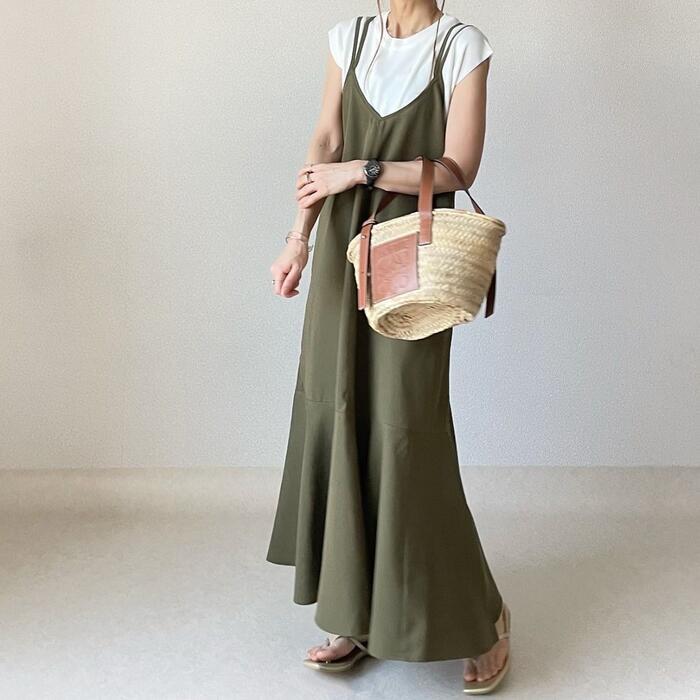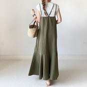 ダブルストラップのキャミソールワンピース。