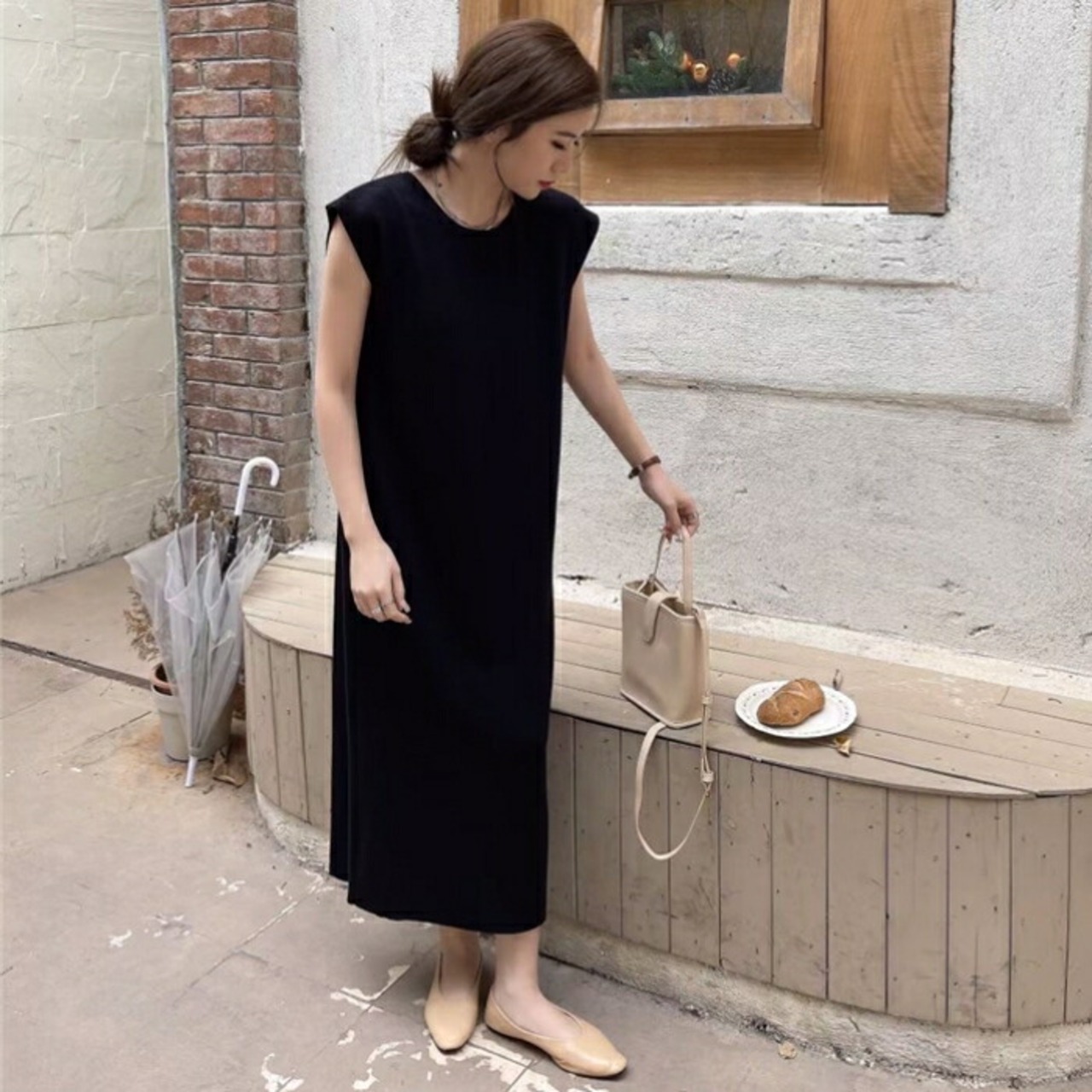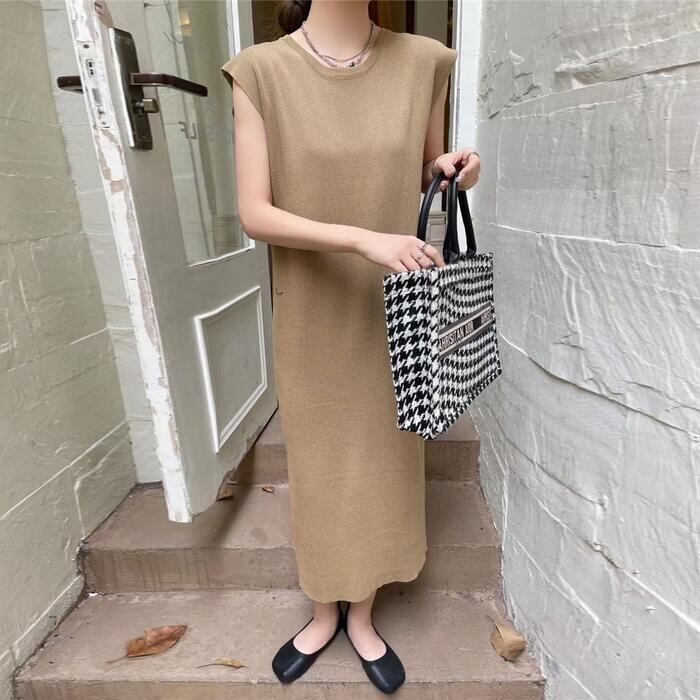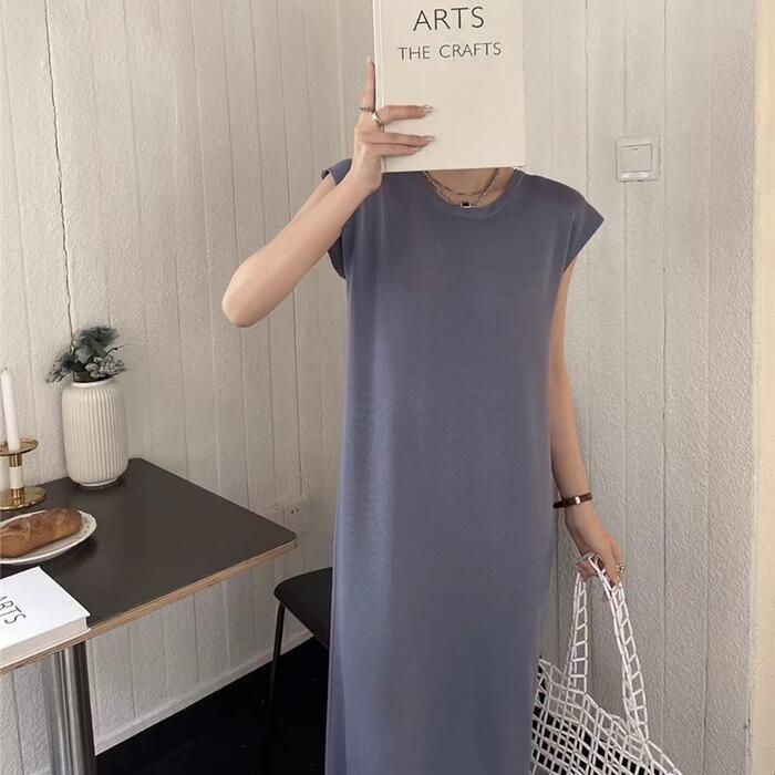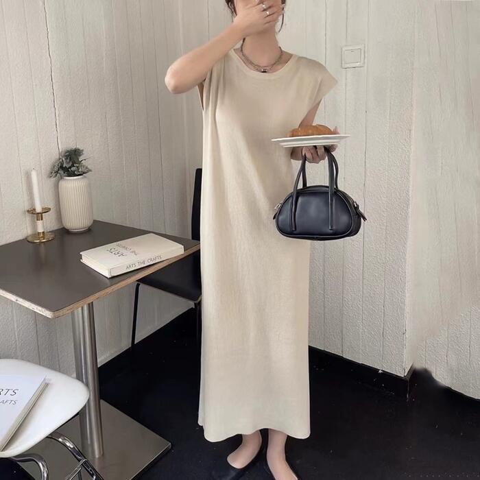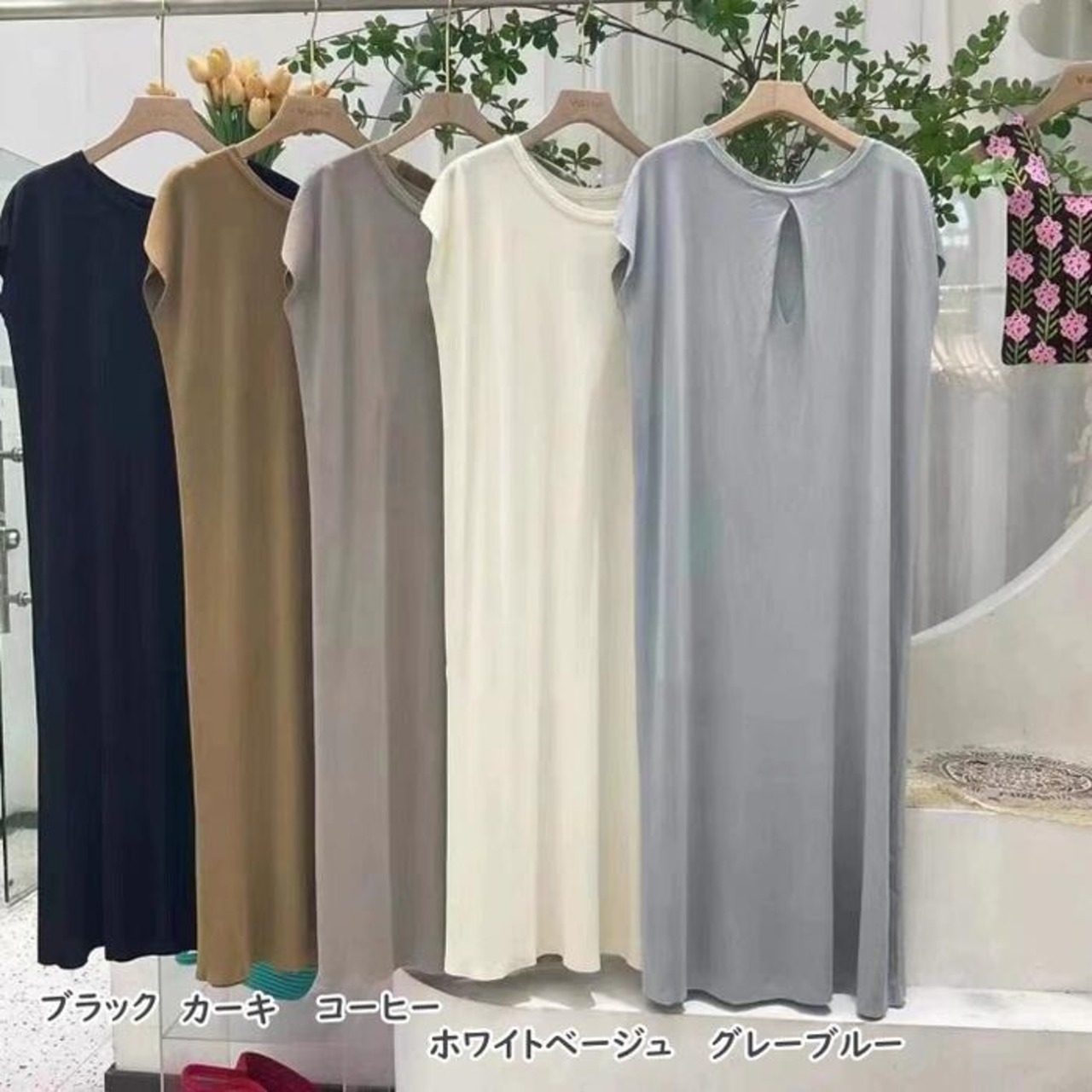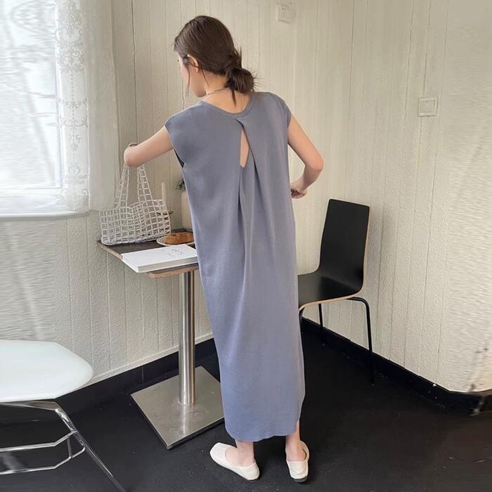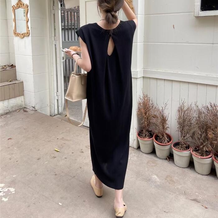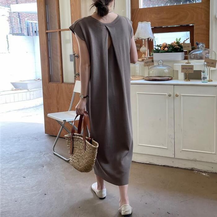 全5色 フレンチスリーブ ワンピース ドレス Tシャツワンピ バックオープン レディース きれいめ カジュアル ロング丈 大人 可愛い フェミニン Aライン ゆったり 体型カバー 韓国 ホワイト グレー ベージュ ブラック 黒 春 夏 秋 20代 30代 40代 50代