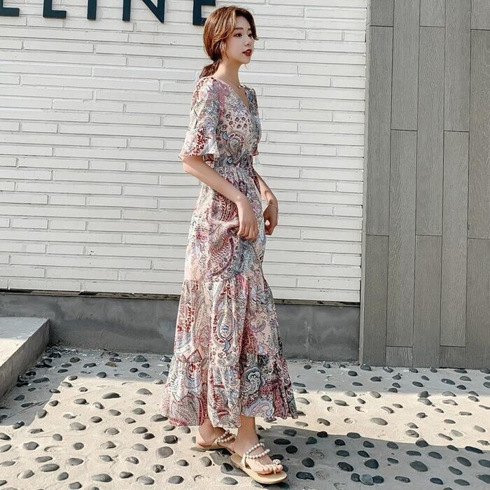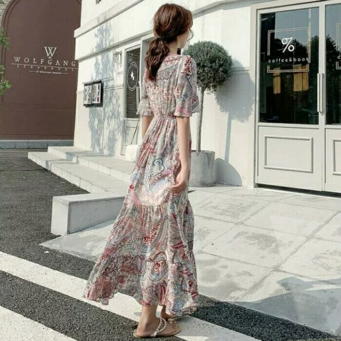 大きいサイズ ティアード ワンピース ドレス 袖あり ペイズリー カシュクール レディース きれいめ カジュアル ロング丈 大人 可愛い 半袖 フェミニン Aライン ゆったり 体型カバー ナチュラル 韓国 マルチカラー 春 夏 秋 20代 30代 40代 50代