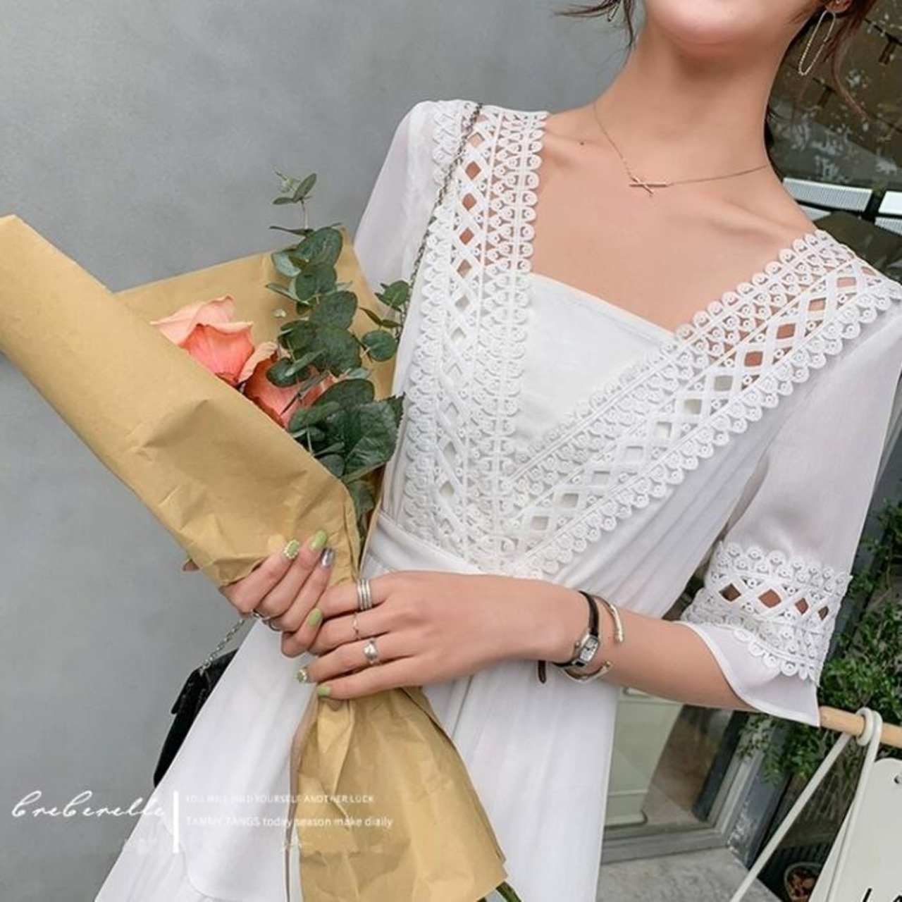 繊細なレースが上品フェミニンなワンピース。