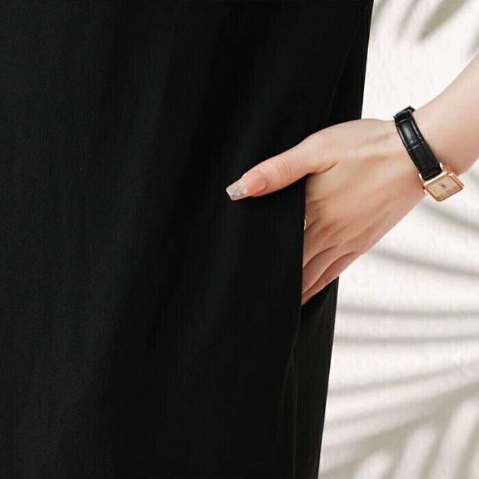 ストンと落ちるストレートシルエット+ミニ丈が大人の可愛らしさを引き立てます。