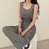 ノースリーブトップス&ロングパンツのセットアップ。