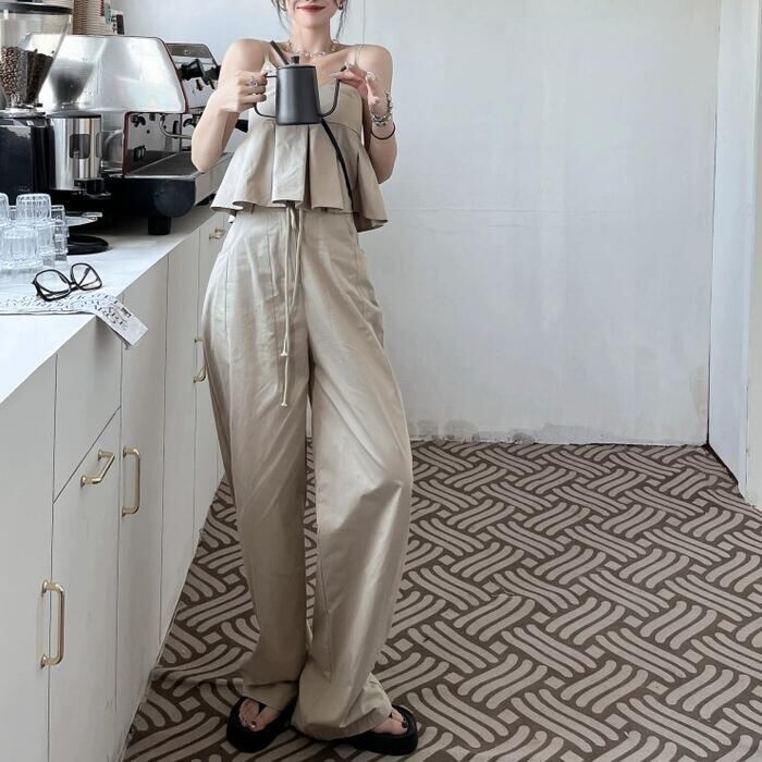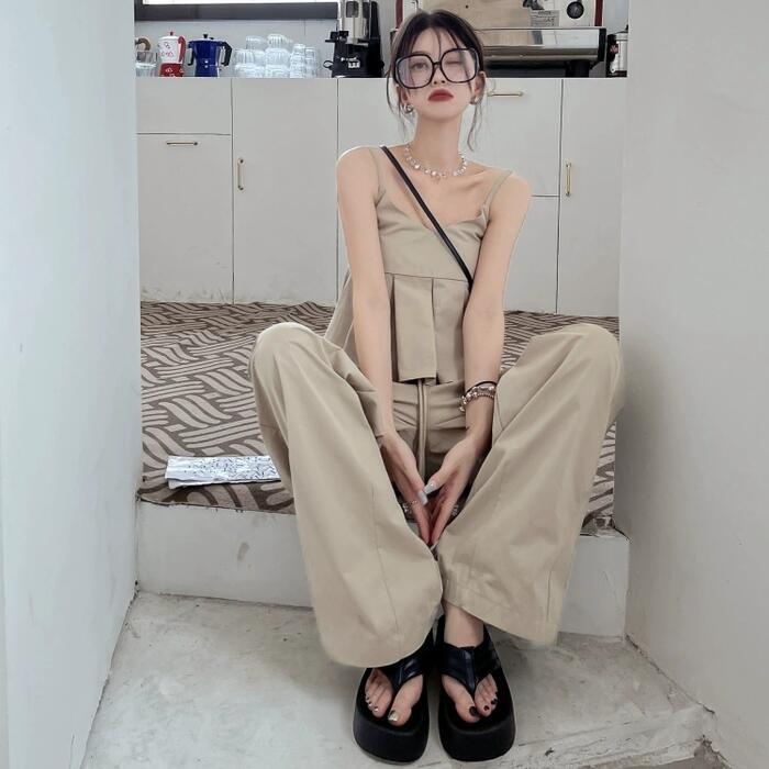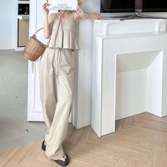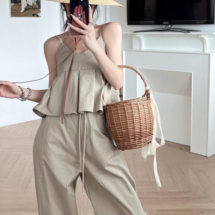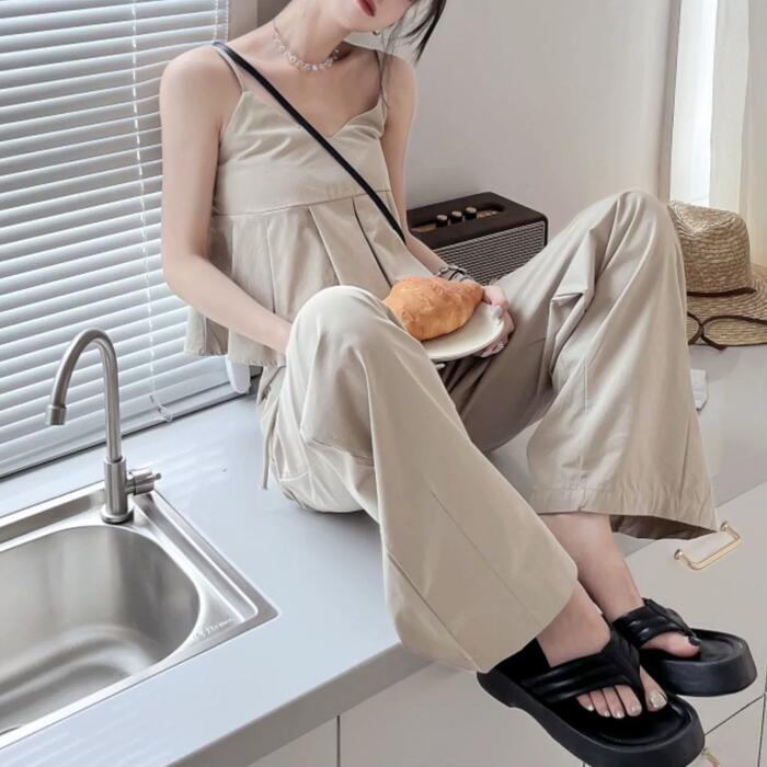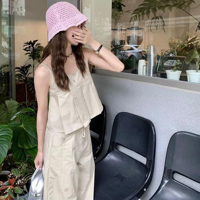トップス キャミソール プリーツ 切り替え ペプラム ノースリーブ レディース きれいめ カジュアル シンプル リラックス 楽ちん 大人 可愛い レイヤード おしゃれ 体型カバー 韓国 ナチュラル ベージュ 春 夏 秋 20代 30代 40代 50代