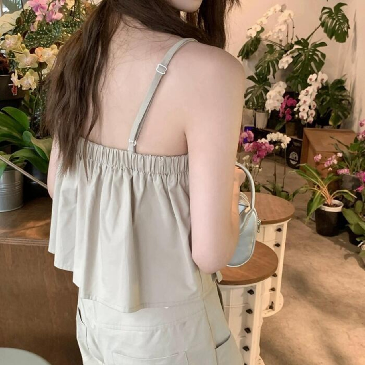 フレアなシルエットが可愛いボックスプリーツのキャミソール。
