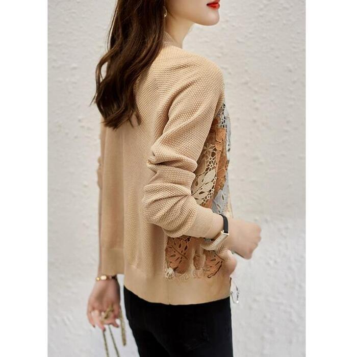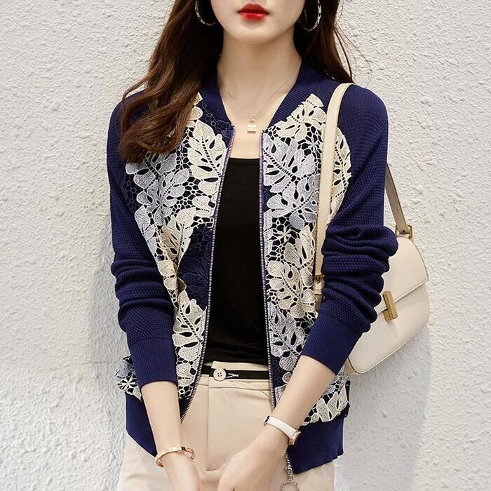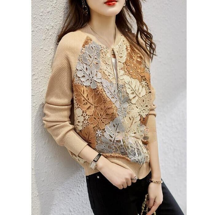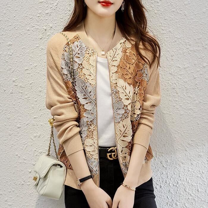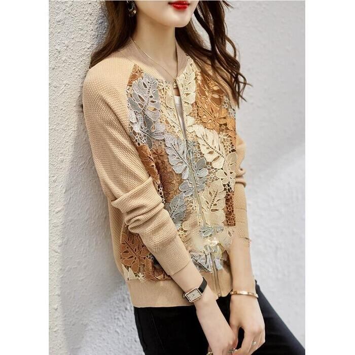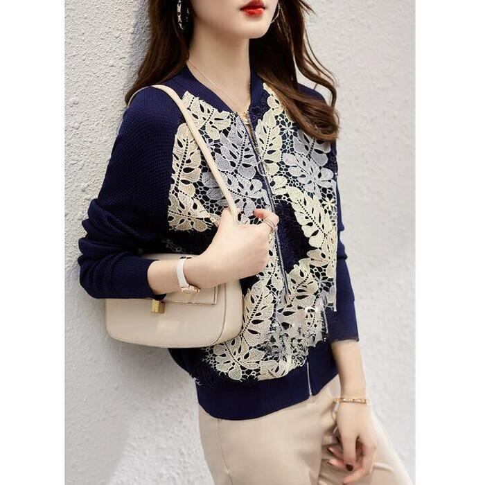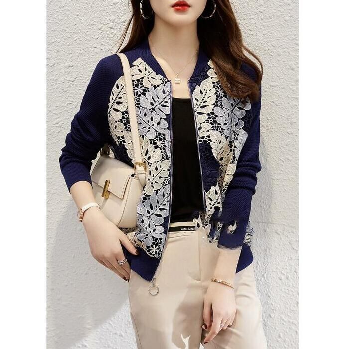 全2色 大きいサイズ アウター ジャケット ブルゾン カーディガン レース リーフ ボタニカル 切り替え 長袖 レディース エレガント きれいめ カジュアル 大人 可愛い おしゃれ 体型カバー 羽織り ナチュラル ベージュ ネイビー 春 夏 秋 20代 30代 40代 50代