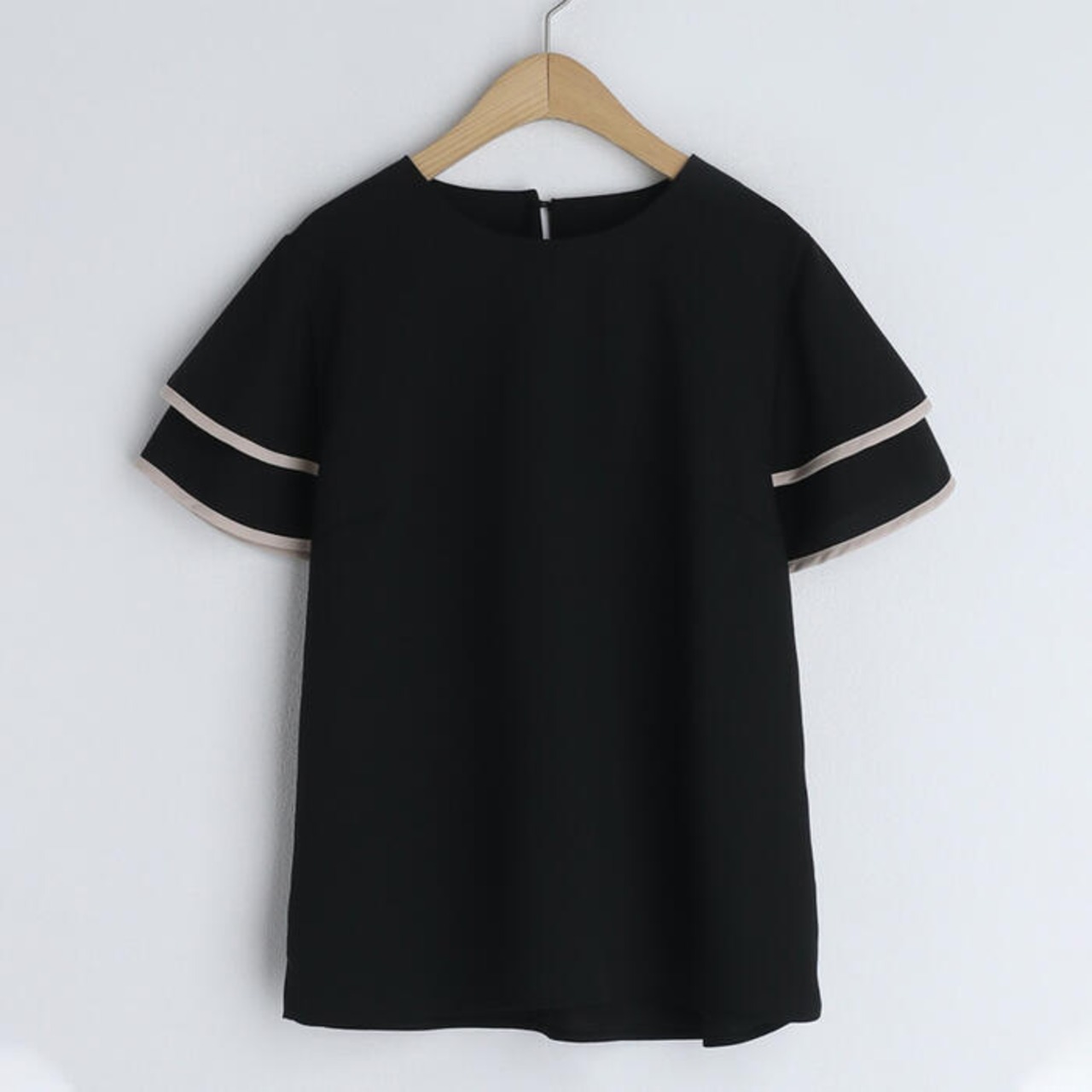 二枚仕立てにしたフレアスリーブが軽やかな雰囲気のブラウス。