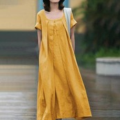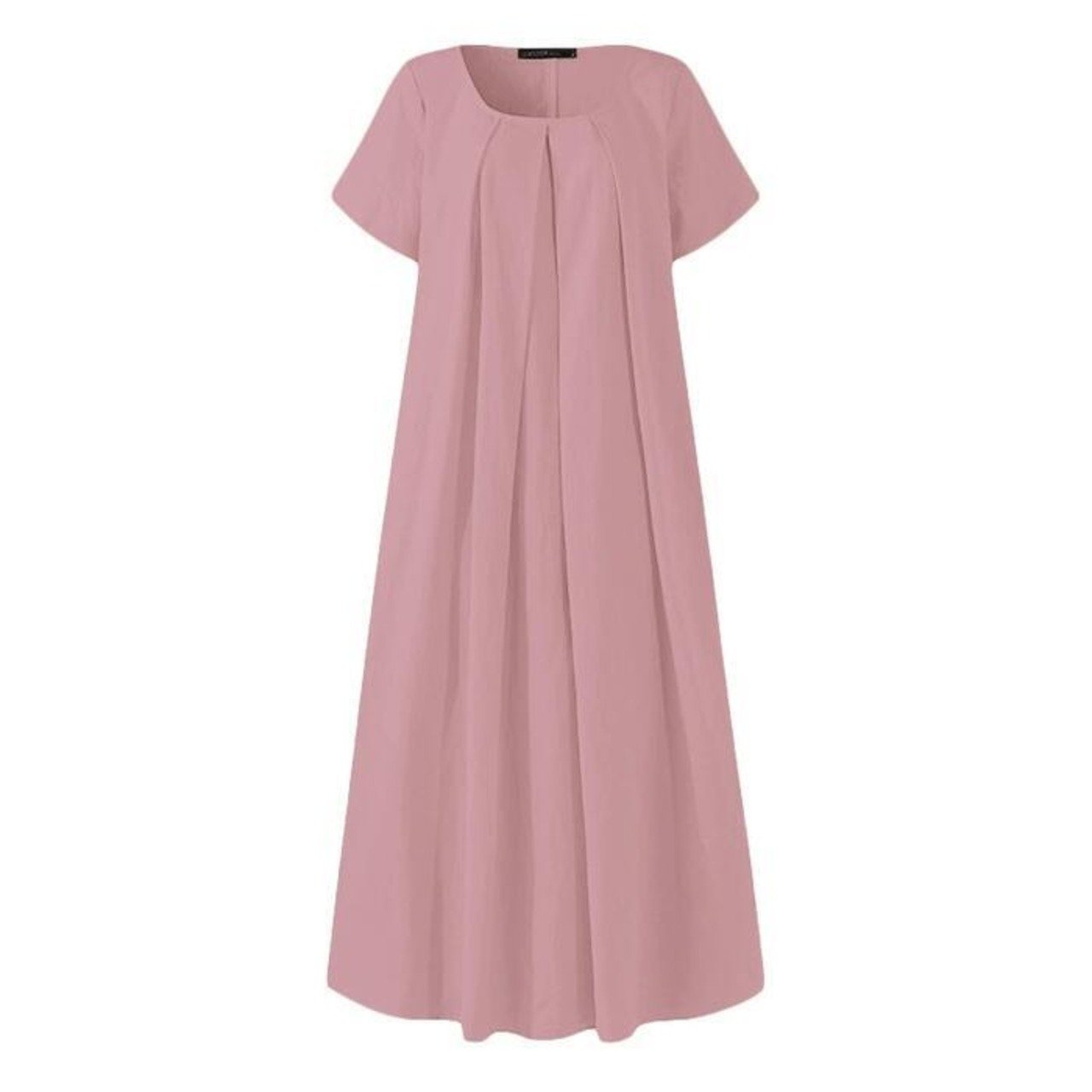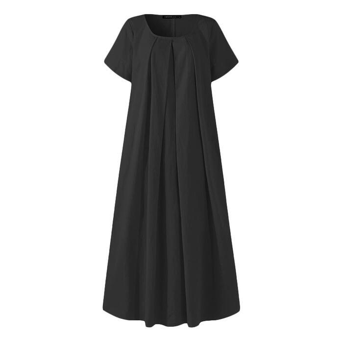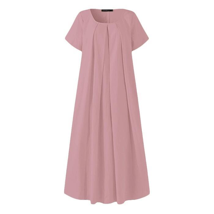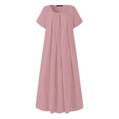 全3色 大きいサイズ ワンピース ドレス 袖あり レディース プリーツ きれいめ カジュアル ロング丈 ロングワンピ 半袖 大人 可愛い シンプル フェミニン ゆったり リラックス Aライン 体型カバー ピンク イエロー ブラック 黒 春 夏 秋 20代 30代 40代 50代