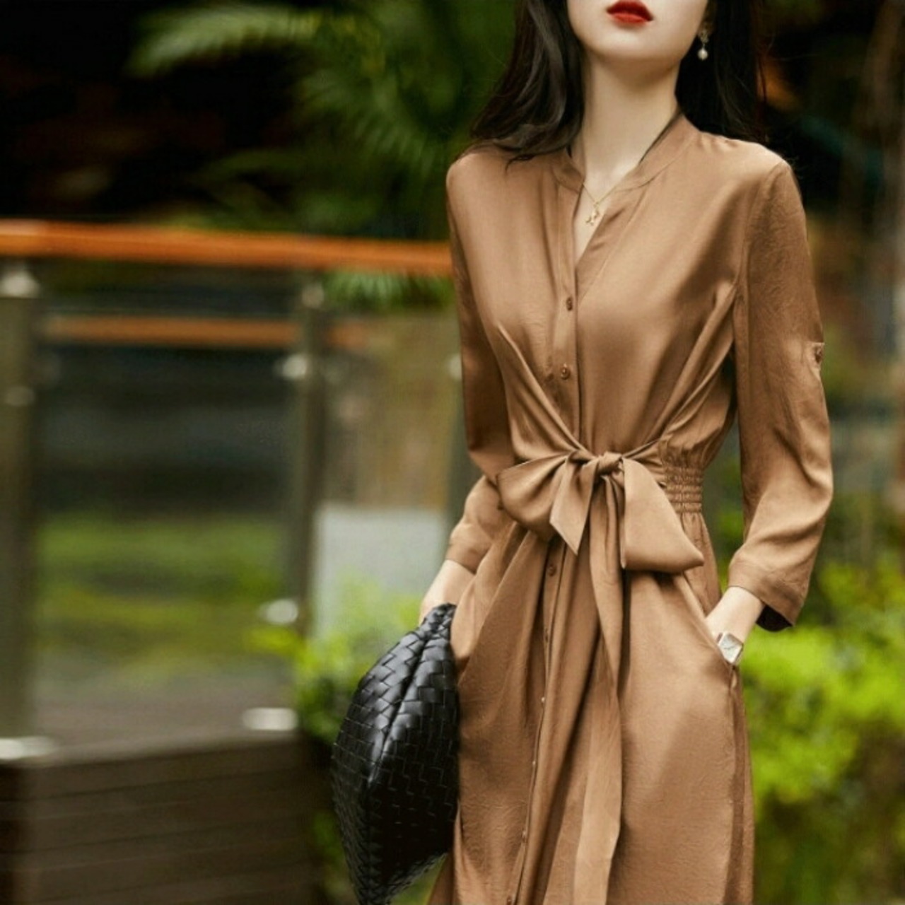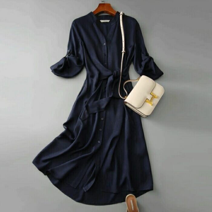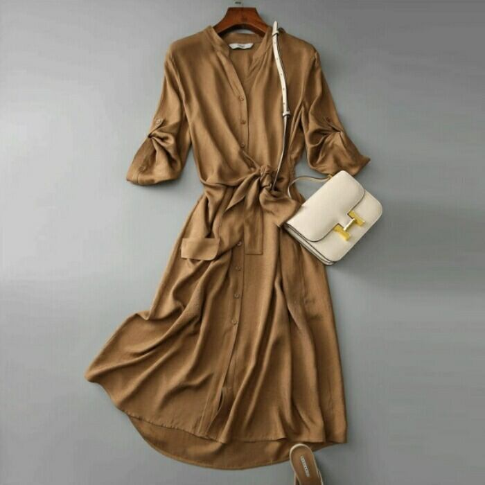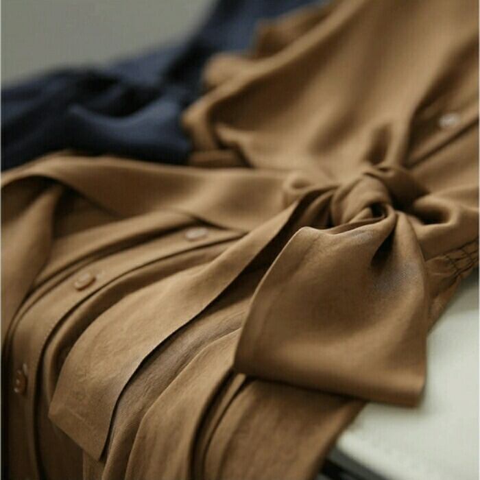 しなやかな生地感が上品な印象のシャツワンピース。