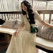 存在感のあるカットワークレースのティアードワンピース。