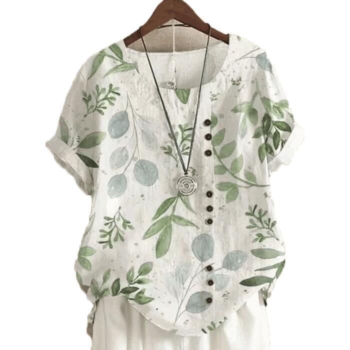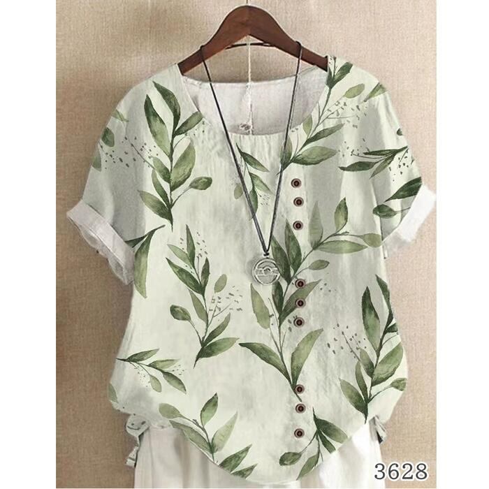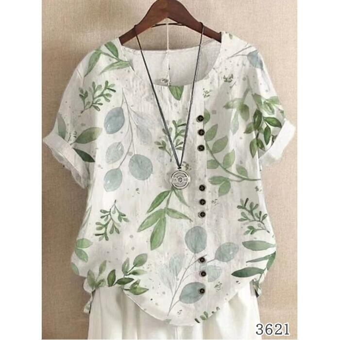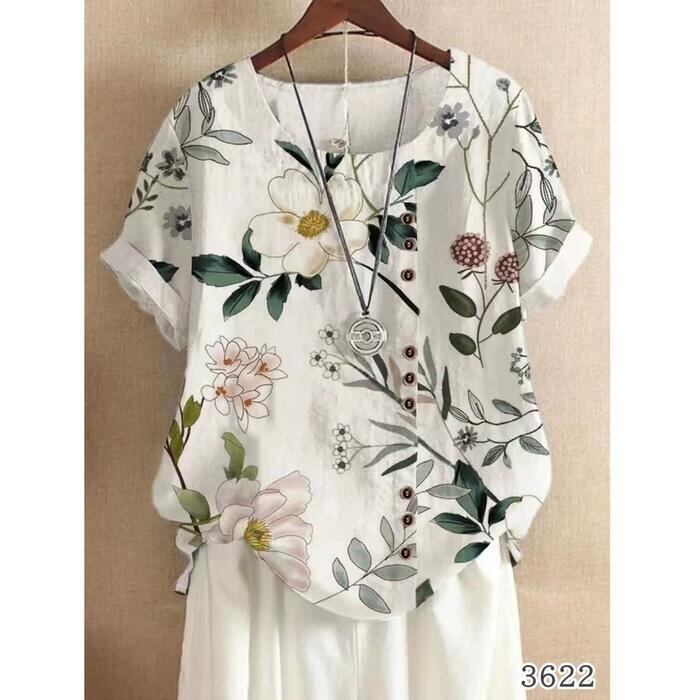 全3色 大きいサイズ 綿麻 トップス シャツ ブラウス プルオーバー コットン リネン ボタニカル 花柄 レディース エレガント きれいめ カジュアル 半袖 大人 可愛い フェミニン ゆったり ナチュラル 体型カバー ホワイト 白 春 夏 秋 20代 30代 40代 50代