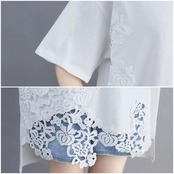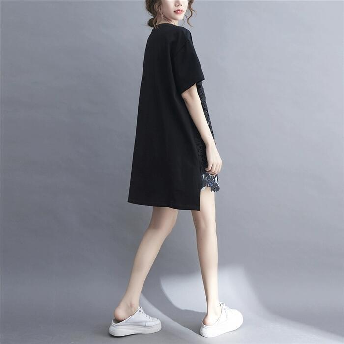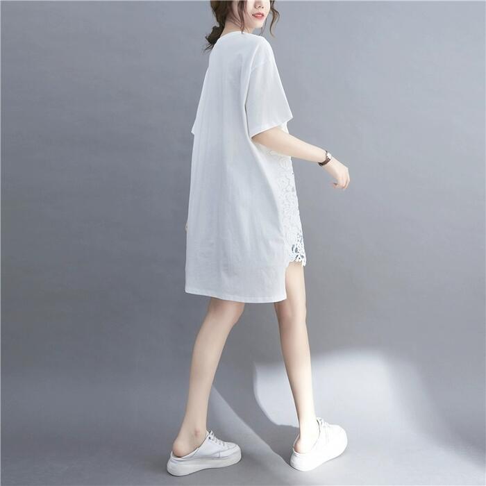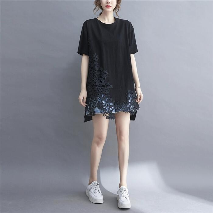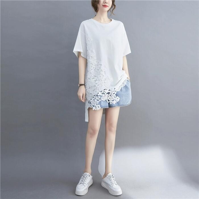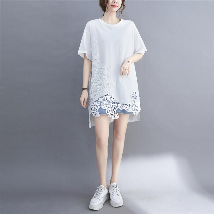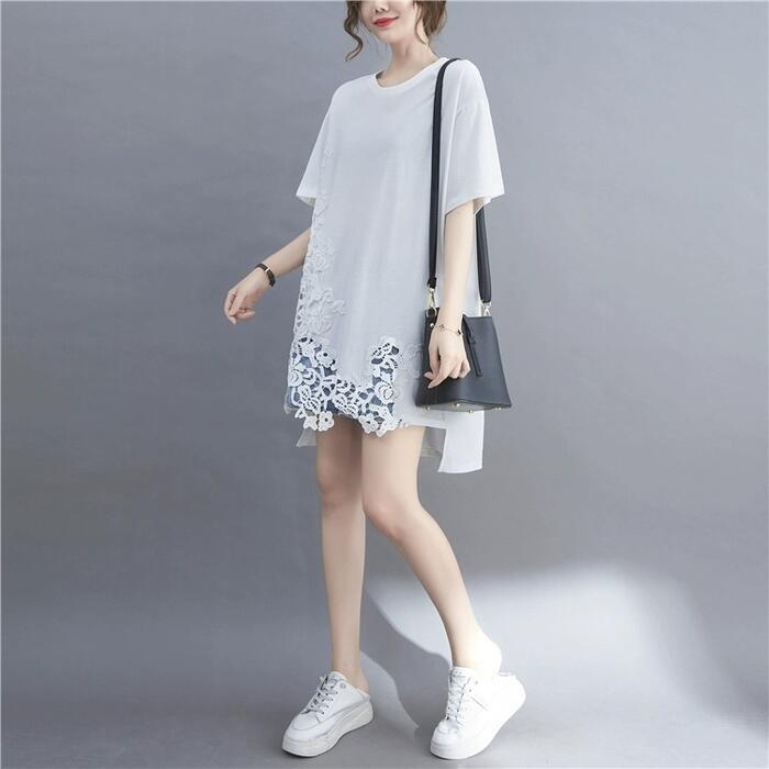 全2色 大きいサイズ トップス Tシャツ レース プルオーバー カットソー レディース きれいめ カジュアル 半袖 大人 可愛い フェミニン ゆったり オーバーサイズ ビッグシルエット 体型カバー シンプル ホワイト 白 ブラック 黒 春 夏 秋 20代 30代 40代 50代