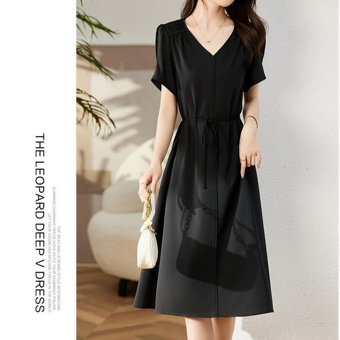 顔周りをすっきり見せてくれるVネックワンピース。